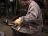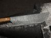 Apres un premier passage par le brut de forge, Vincent revient pour du damas. Couteau forgé en damas de 224 couches avec un manche en orme. Une vraie merveille.