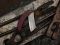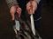 1 pliant avec manche en amarante et 1 fixe avec manche en olivier.