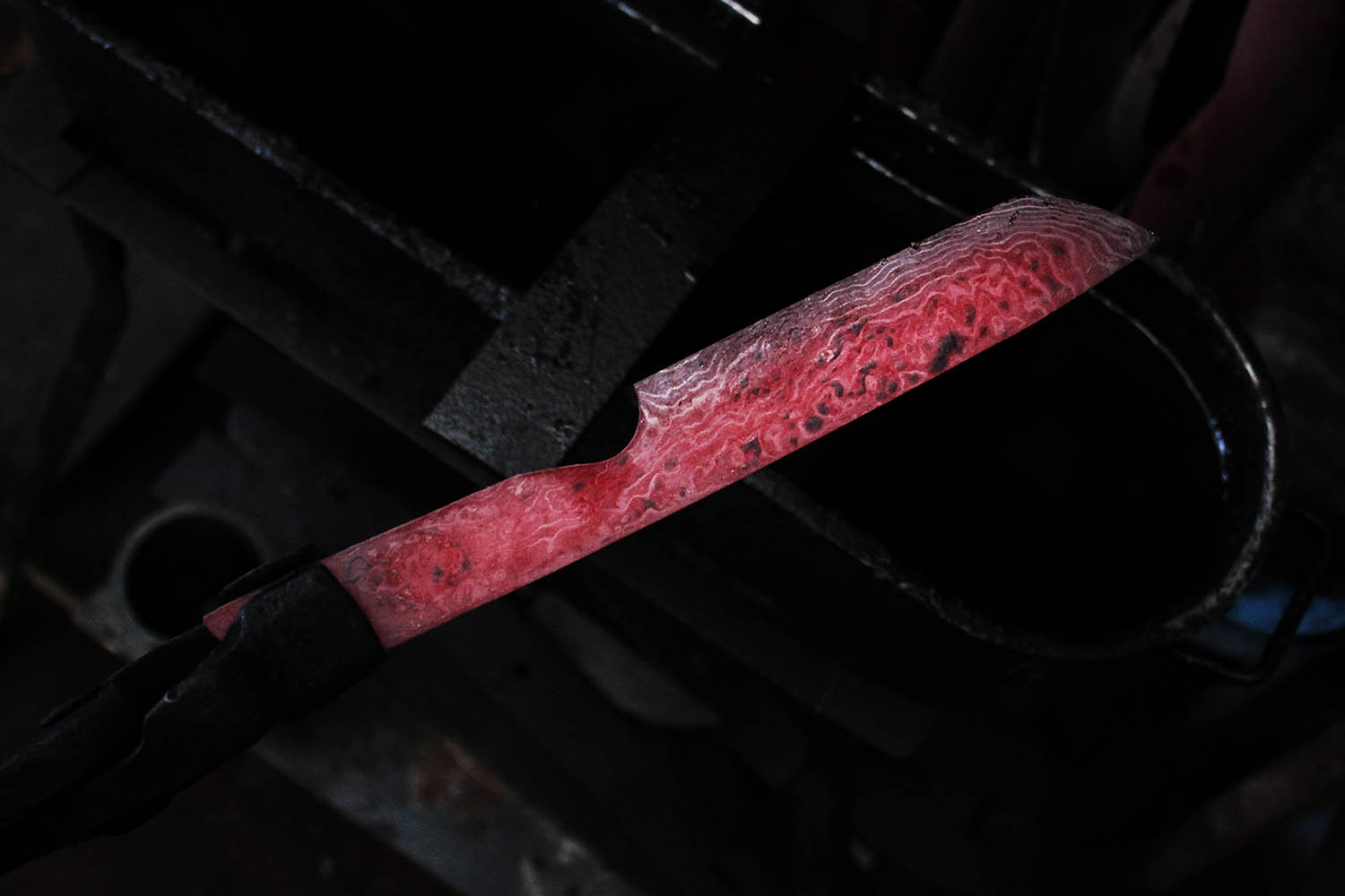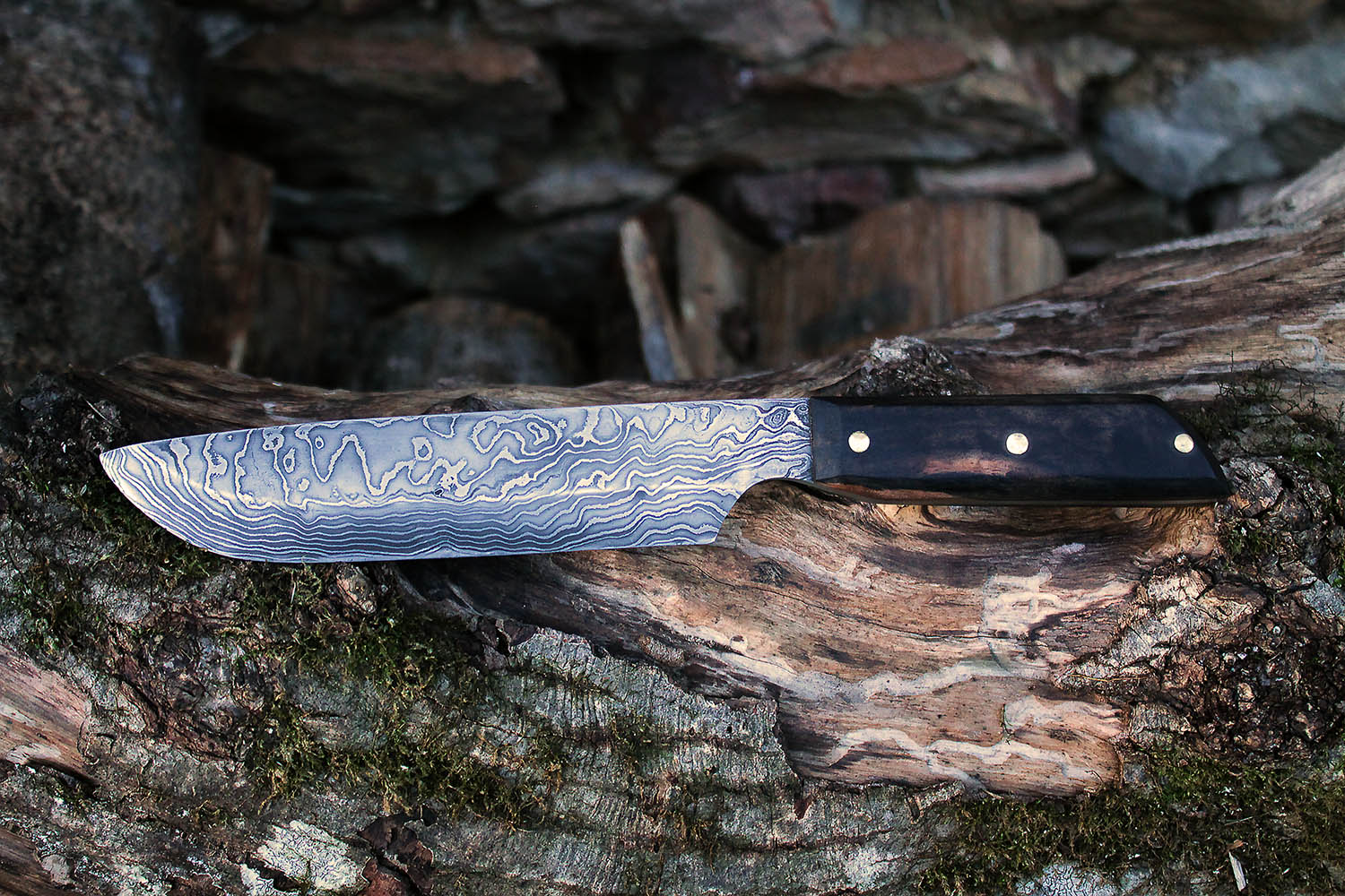 Étant un grand artisan de talent, Pierre-Louis est venu à ce stage de forge grâce à un cadeau de sa femme. Le résultat est splendide avec ce couteau droit et son manche en ébène.