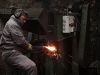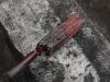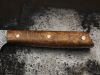 Apres un premier passage par le brut de forge, Vincent revient pour du damas. Couteau forgé en damas de 224 couches avec un manche en orme. Une vraie merveille.