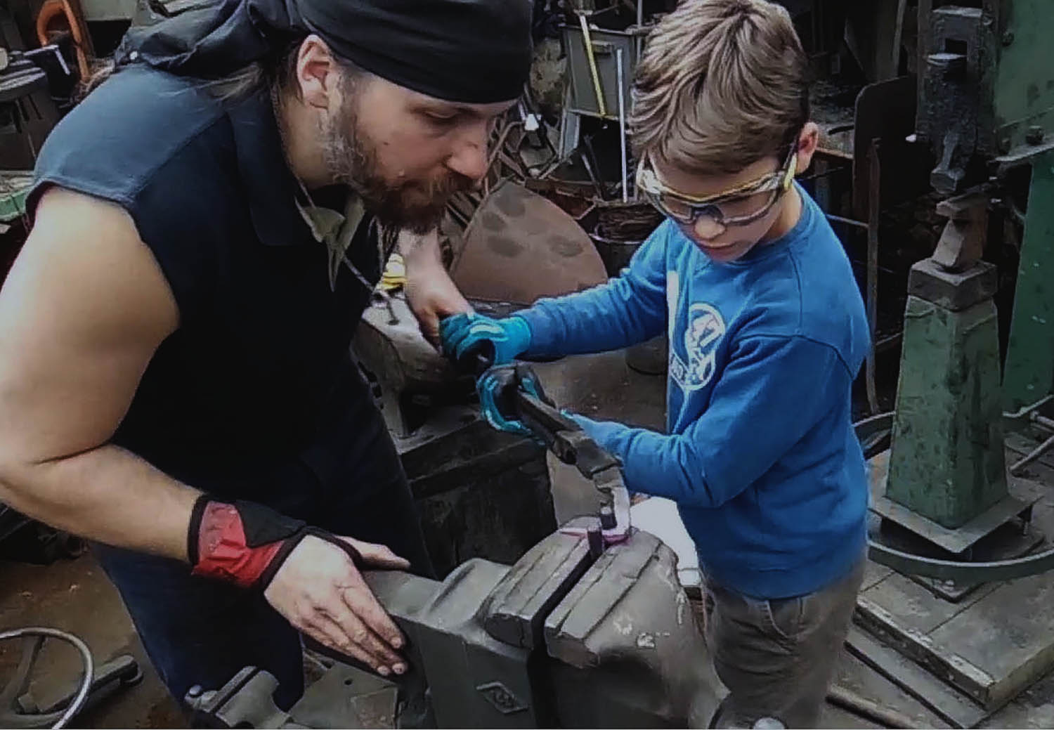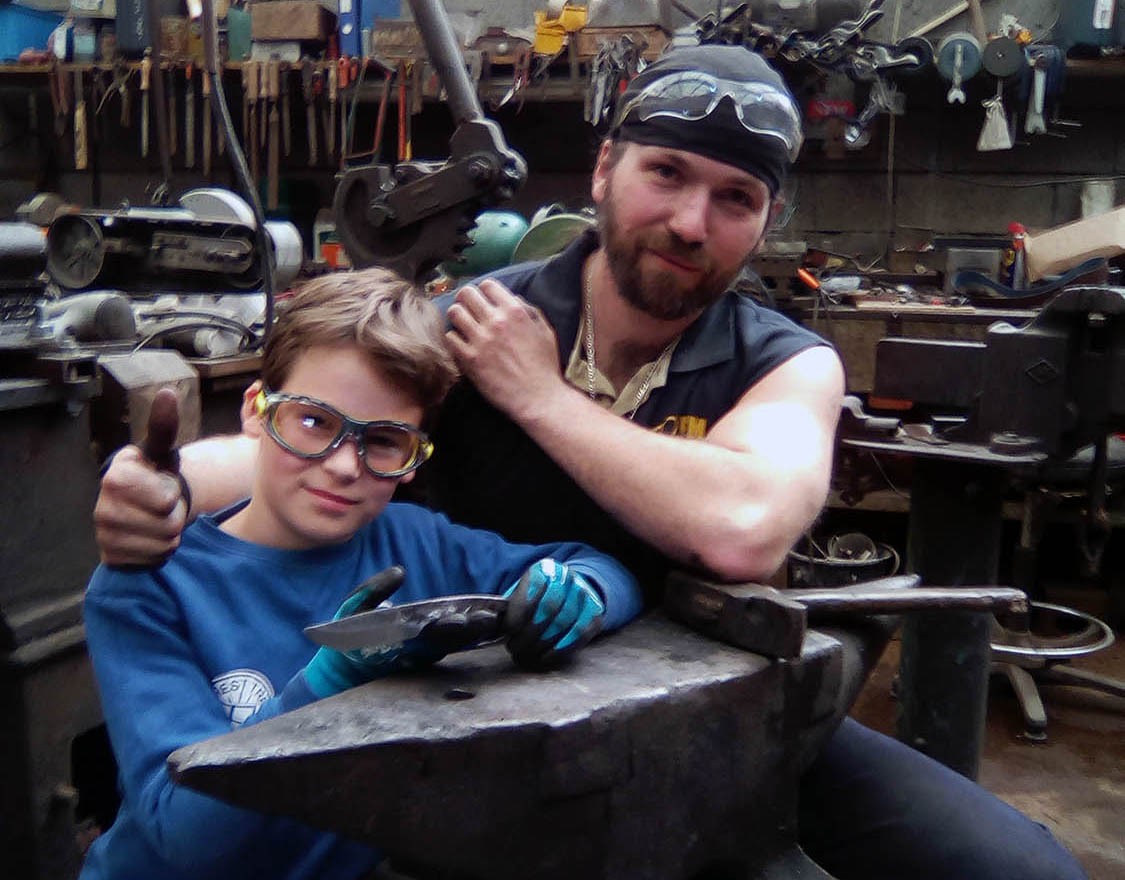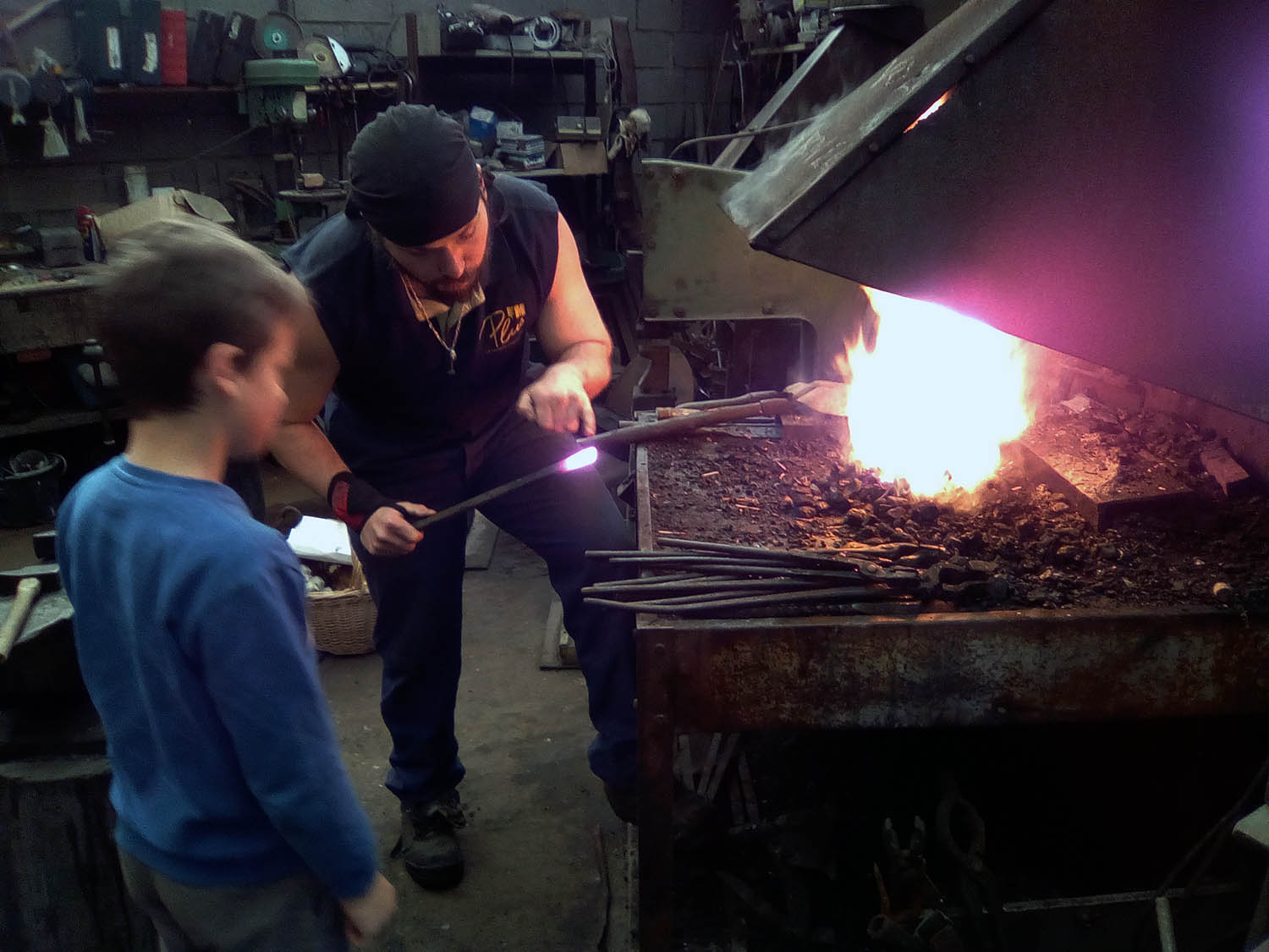 Le papa d'Abel était déjà passé à la maison pour s'essayer à la forge; En admirant le travail de son papa, Abel à souhaité lui aussi réaliser son couteau.