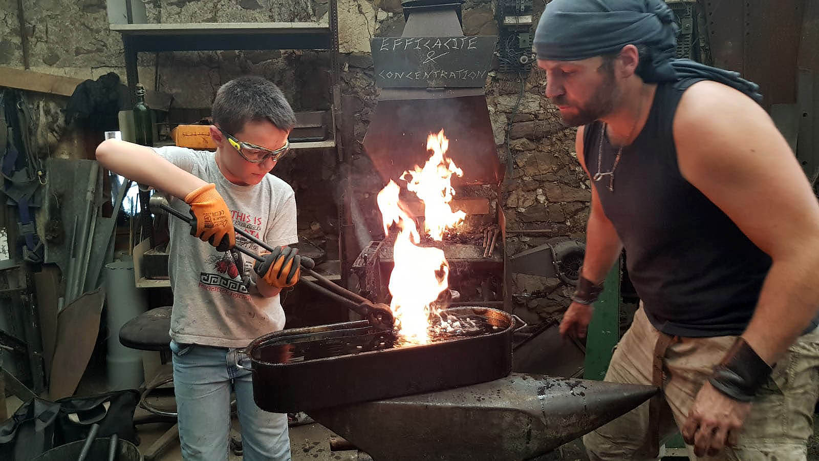 Alex m'a rencontré en festival de forge et a été ultra motivé pour venir apprendre. Ce fut chose faite avec sa maman !