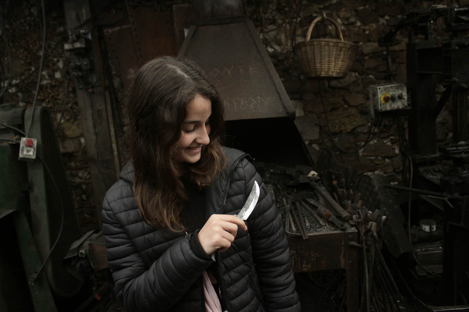 En stage avec son frere, voici le couteau forgé par cette jeune motivée.