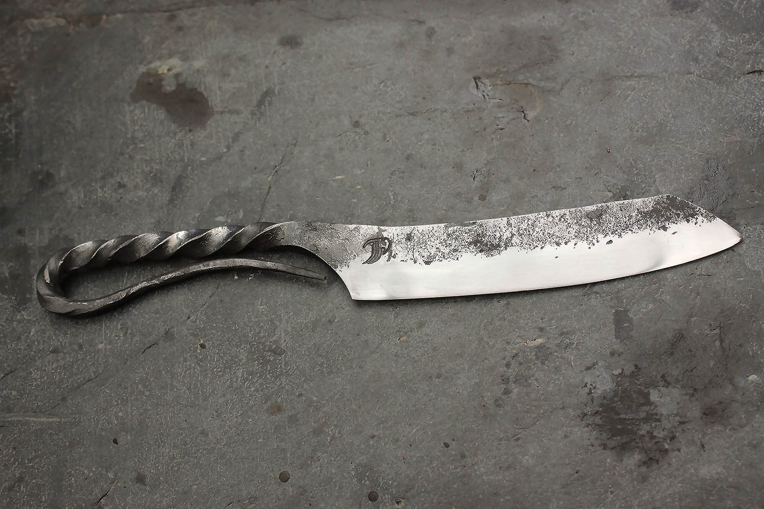 Couteau brut de forge d'inspiration Santoku. Lame de 17cm et manche de 13cm