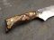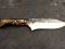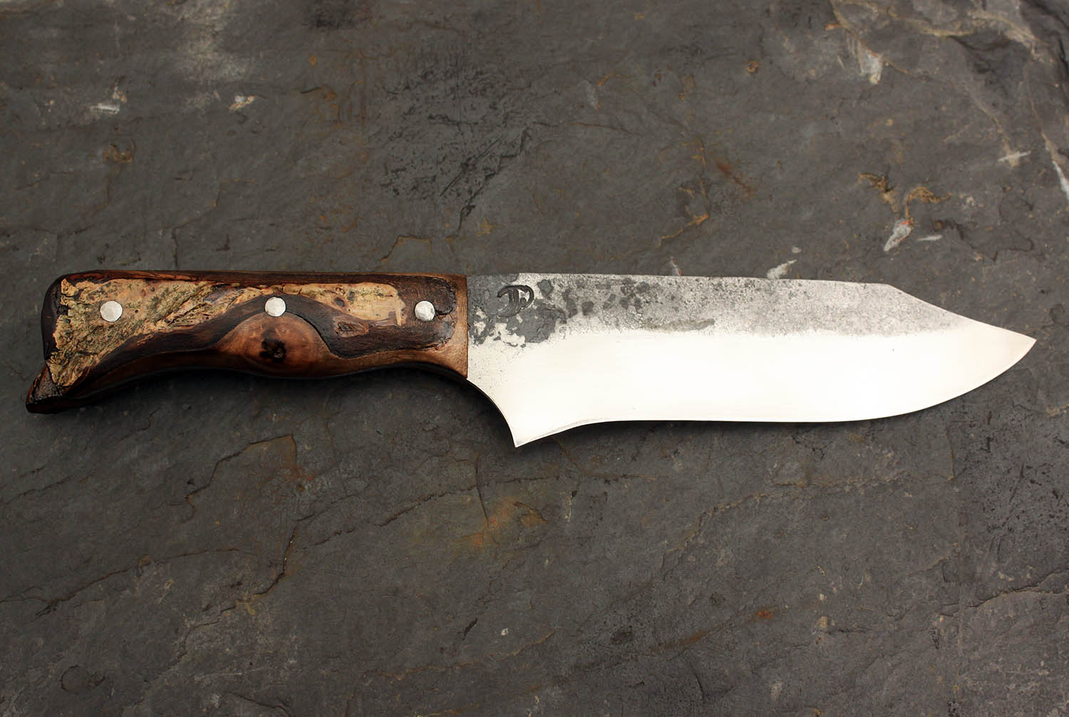 Réalisé pour la chaine de cuisine CHEFCLUB, ce couteau de 5cm de haut en acier XC100 est redoutable. Manche en châtaigner, rivet inox. Design souhaité par le client. Visible en action ici : https://it.pinterest.com/pin/762937993139652501/