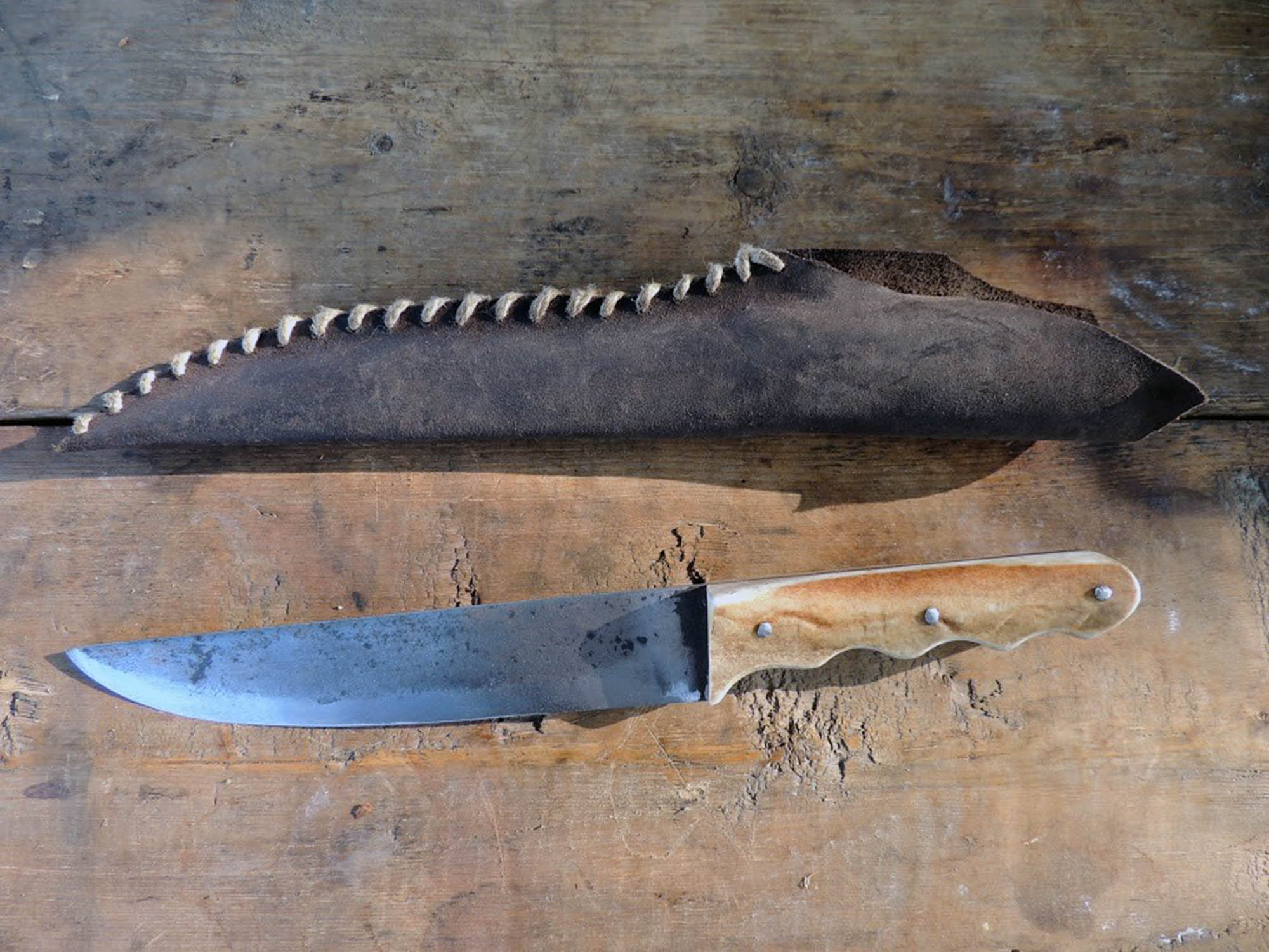 Manche en bois de Renne - Lame de 18cm forgée en acier XC90 - Epaisseur env 3mm - prise ergonomique.