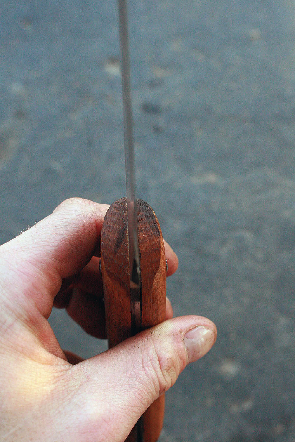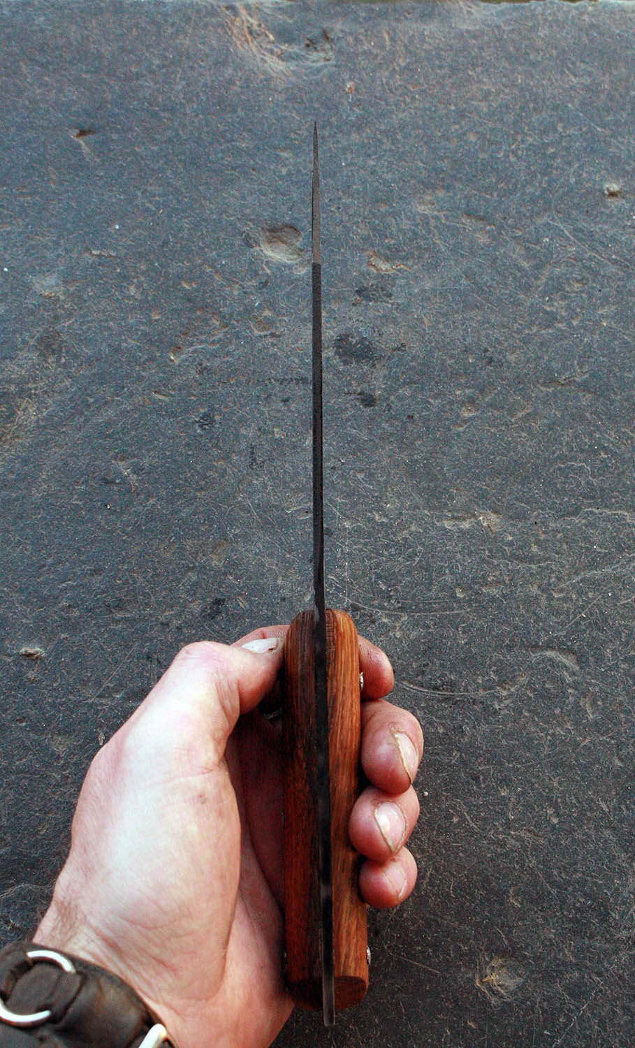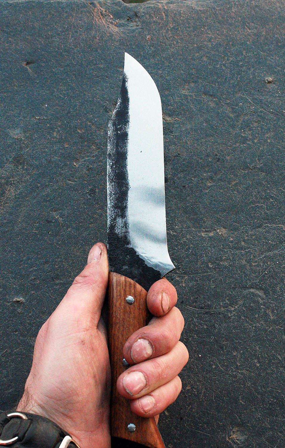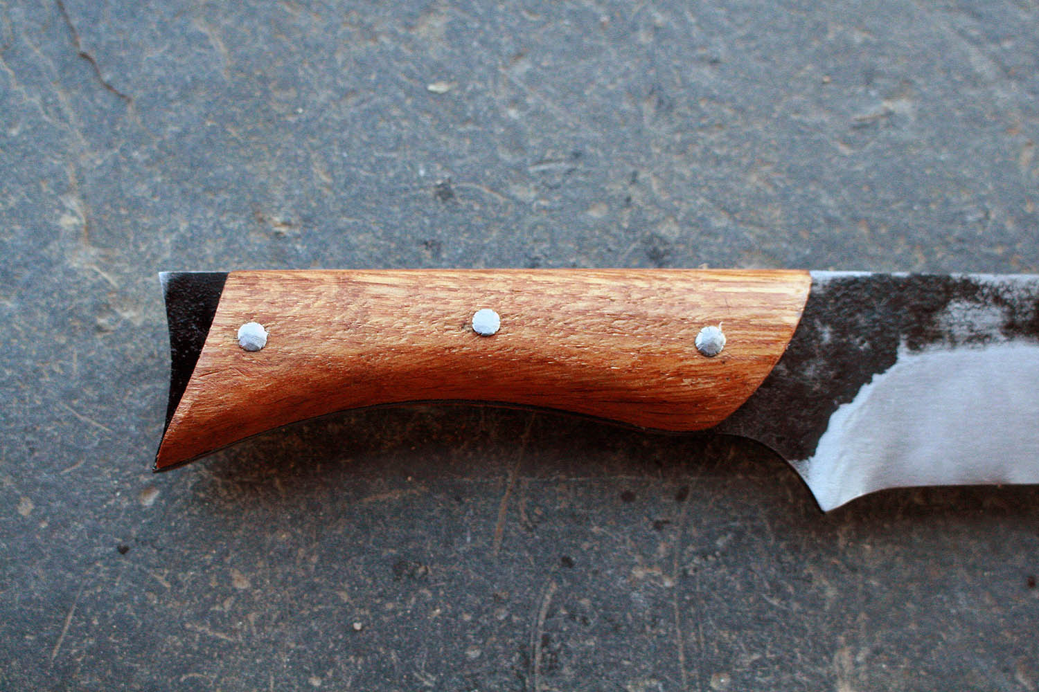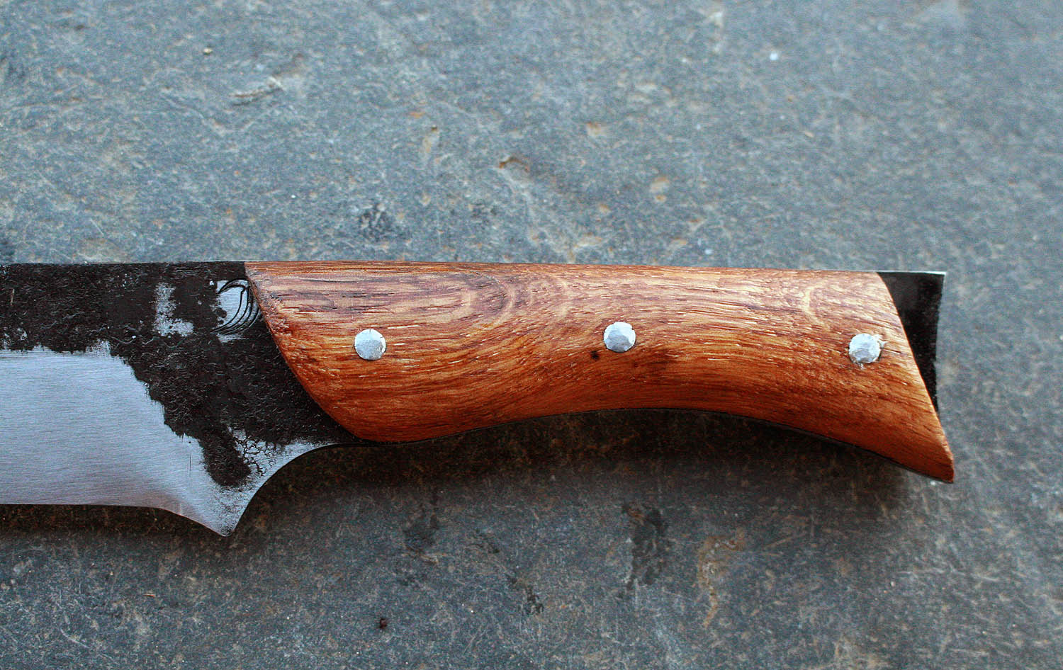 Manche en chêne de 1789 de 12cm - Lame de 15.5cm forgée en acier XC90 - Epaisseur de 3 à 0.5mm - Rivets aciers.