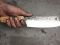 Hachoir forgé en XC100 et manche en Olivier. Lame de 18cm et manche de 12cm pour une prise courte. Montage sur rivet inox.