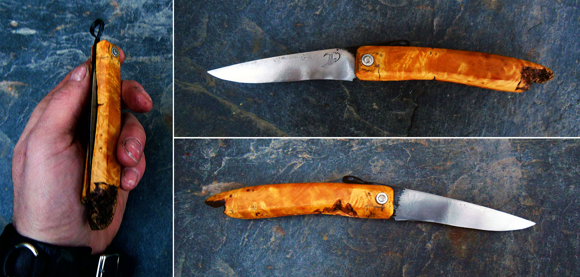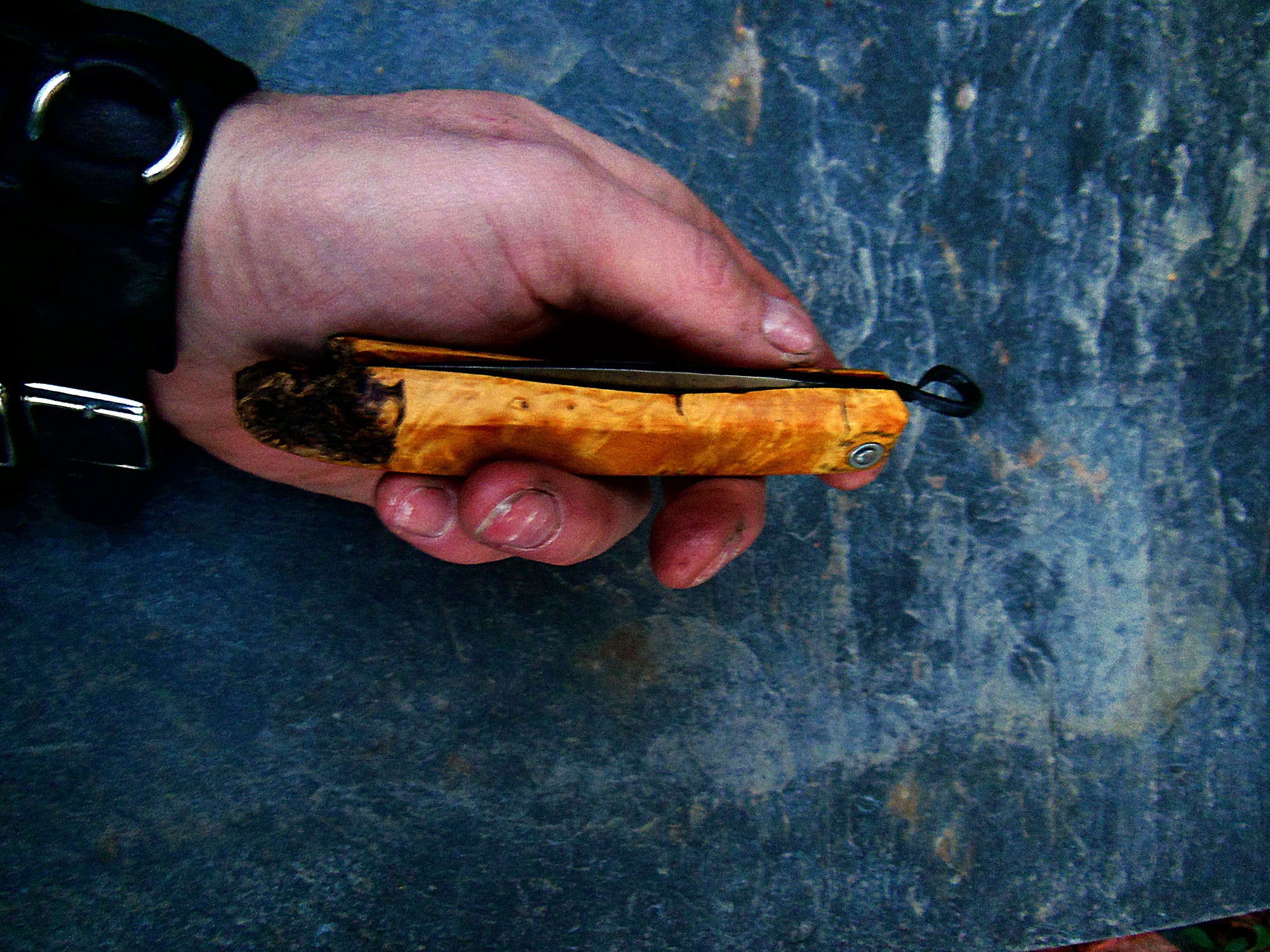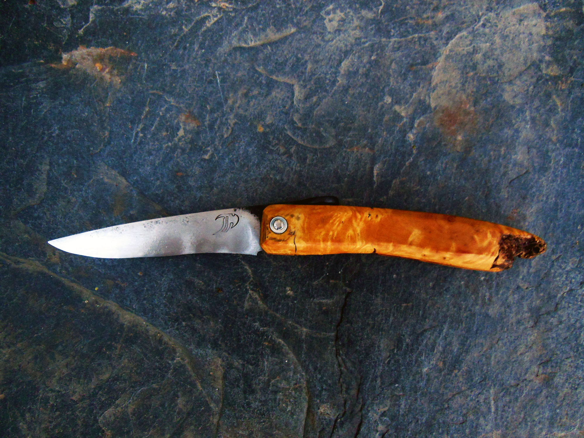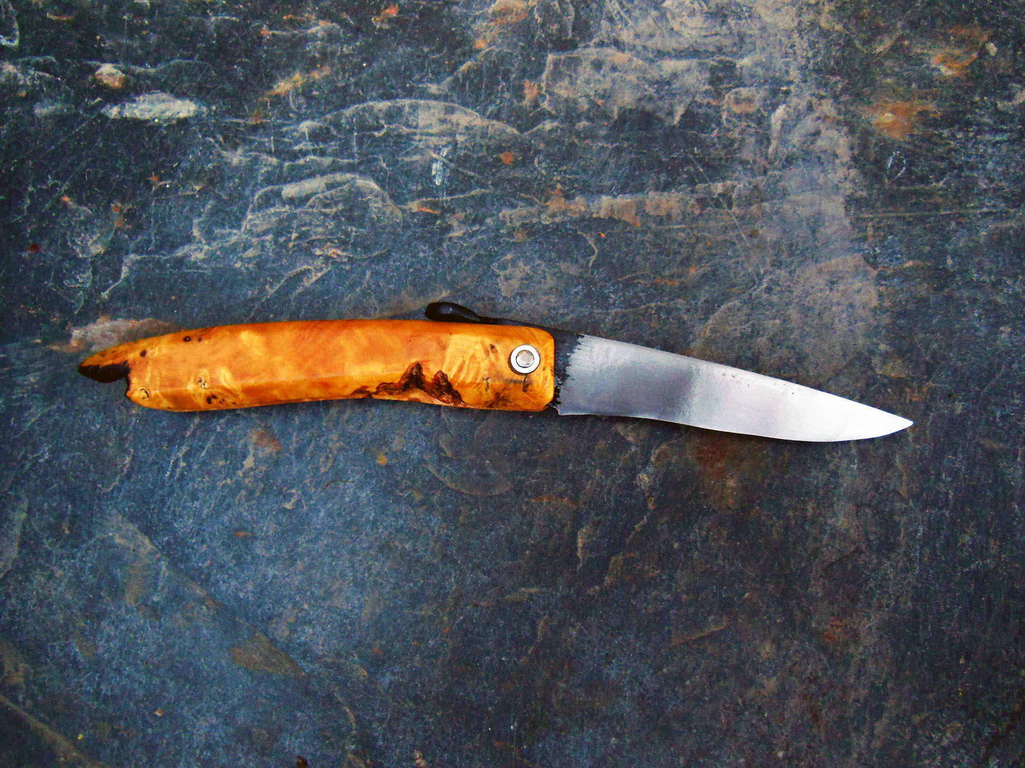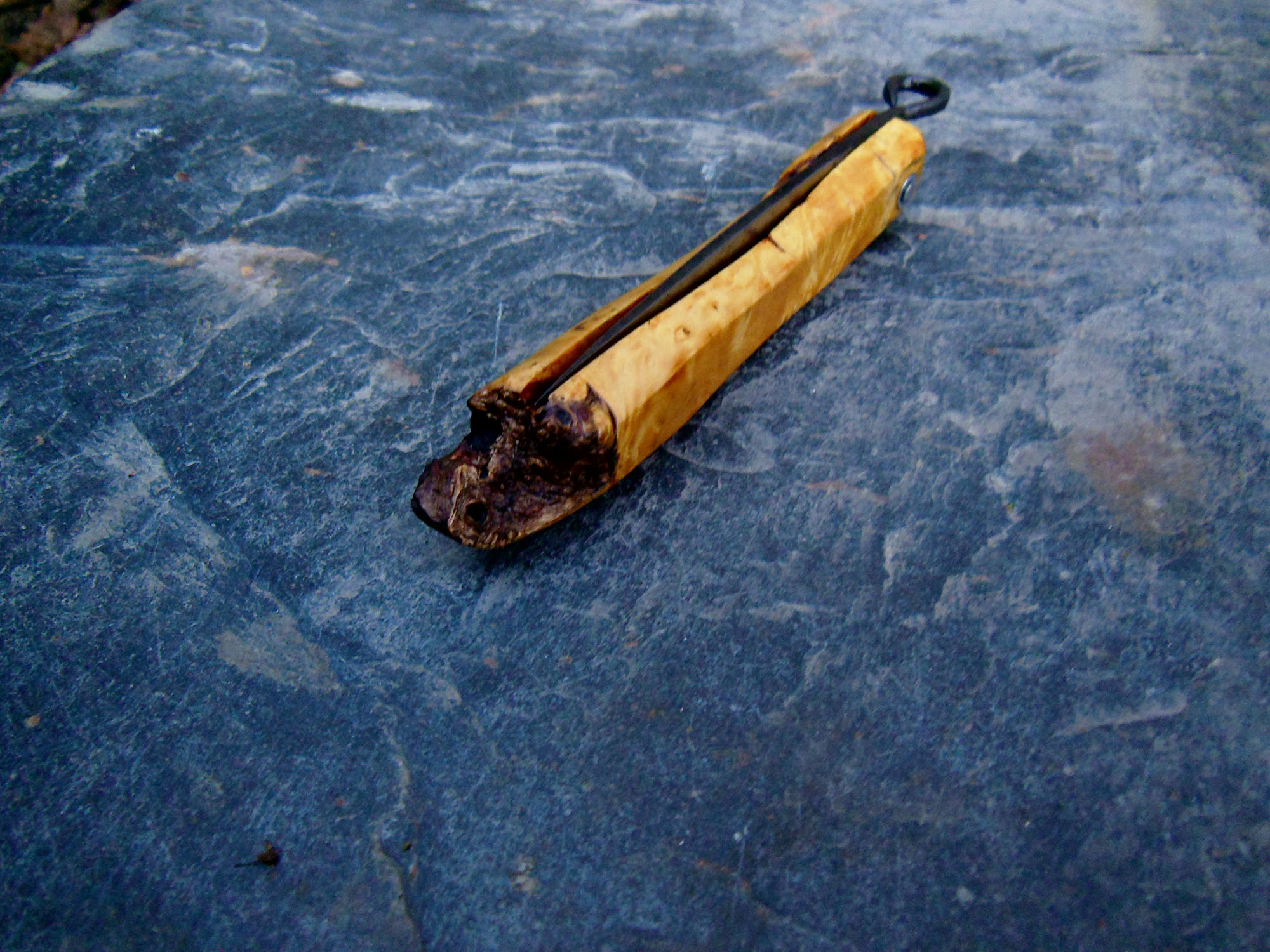 Manche en Buis brut de 11cm - Lame de 10cm forgée en acier XC80 - Epaisseur env 2mm - Axe en inox.