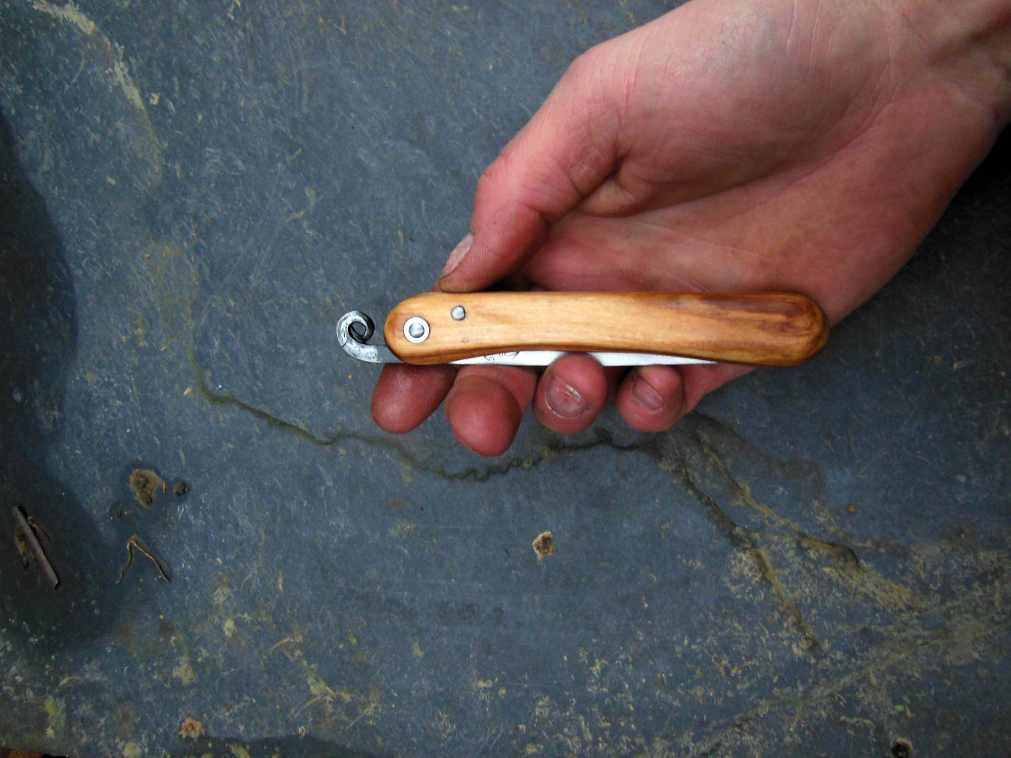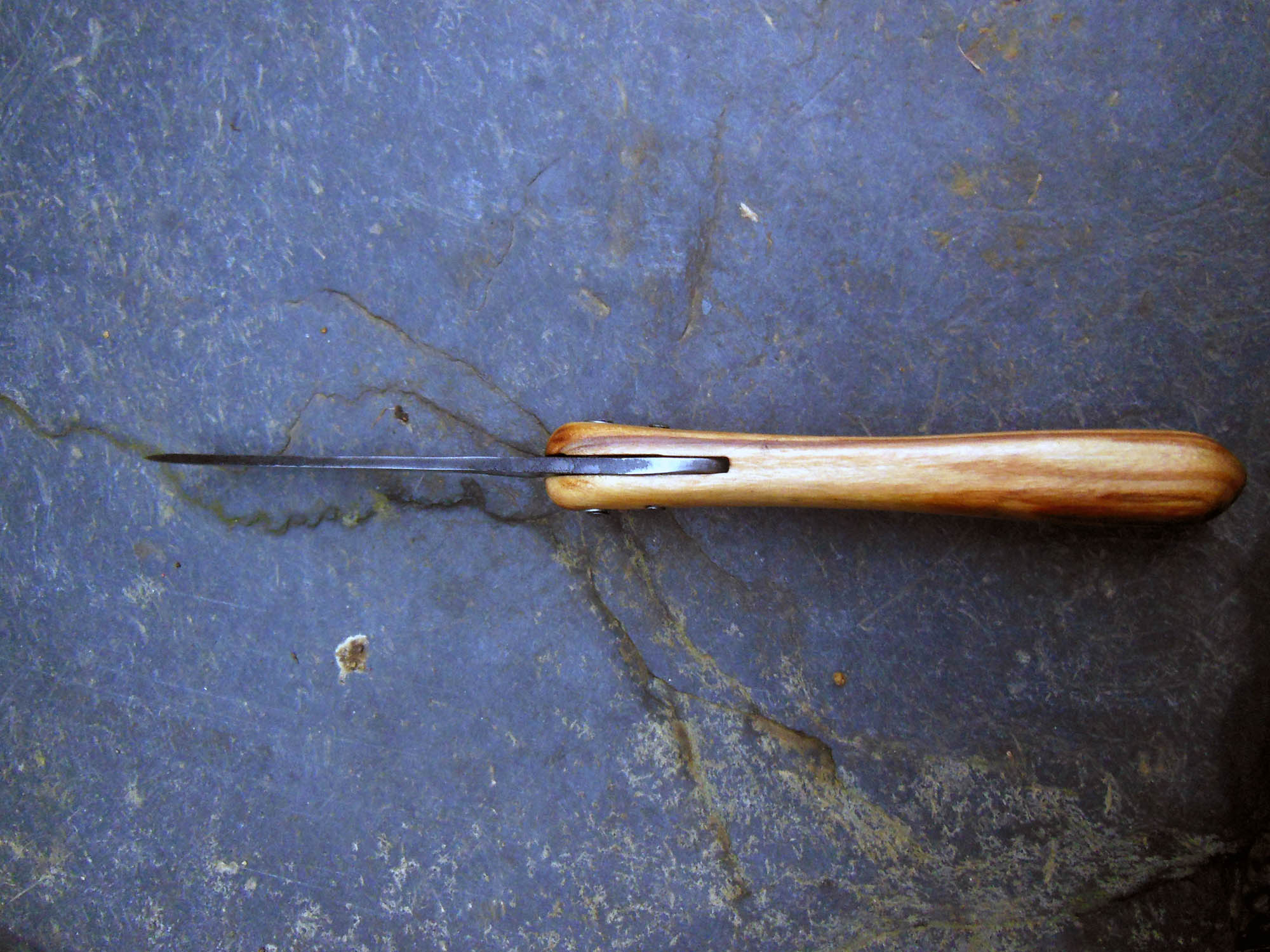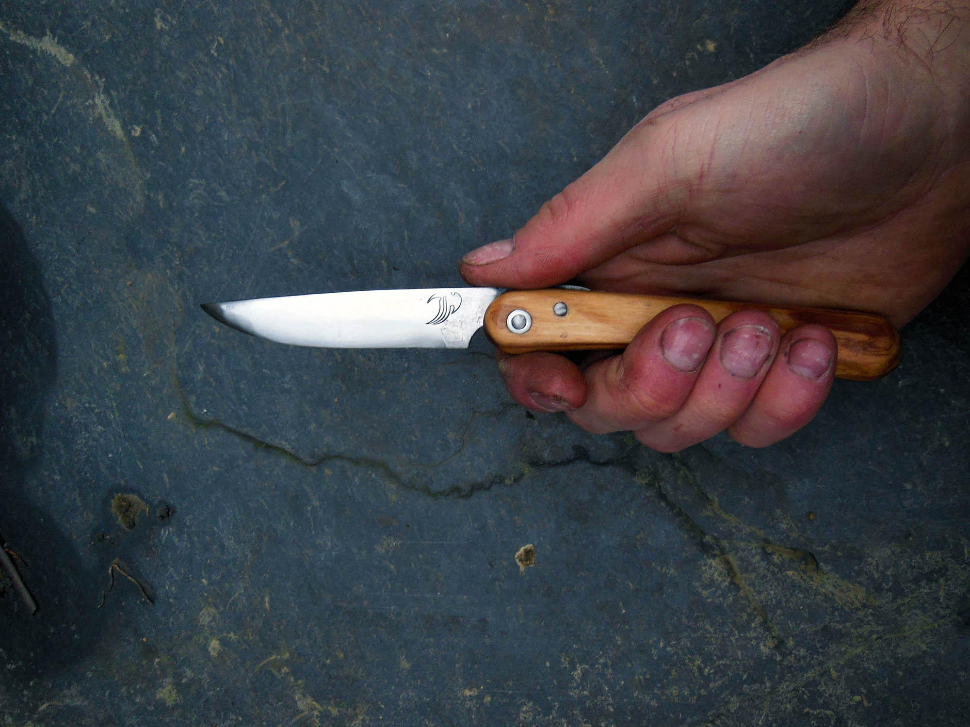 Manche en Olivier de 12cm - Lame de 10.5cm forgée en acier XC80 - Epaisseur env 2.5mm - Axe en Inox.