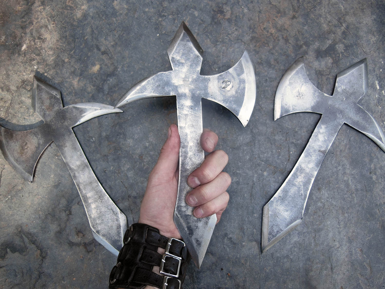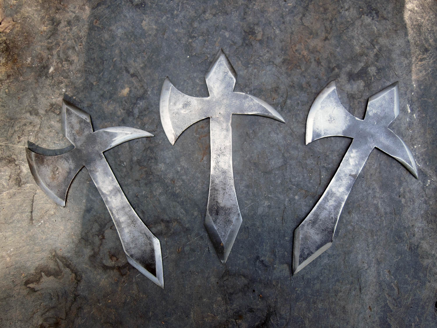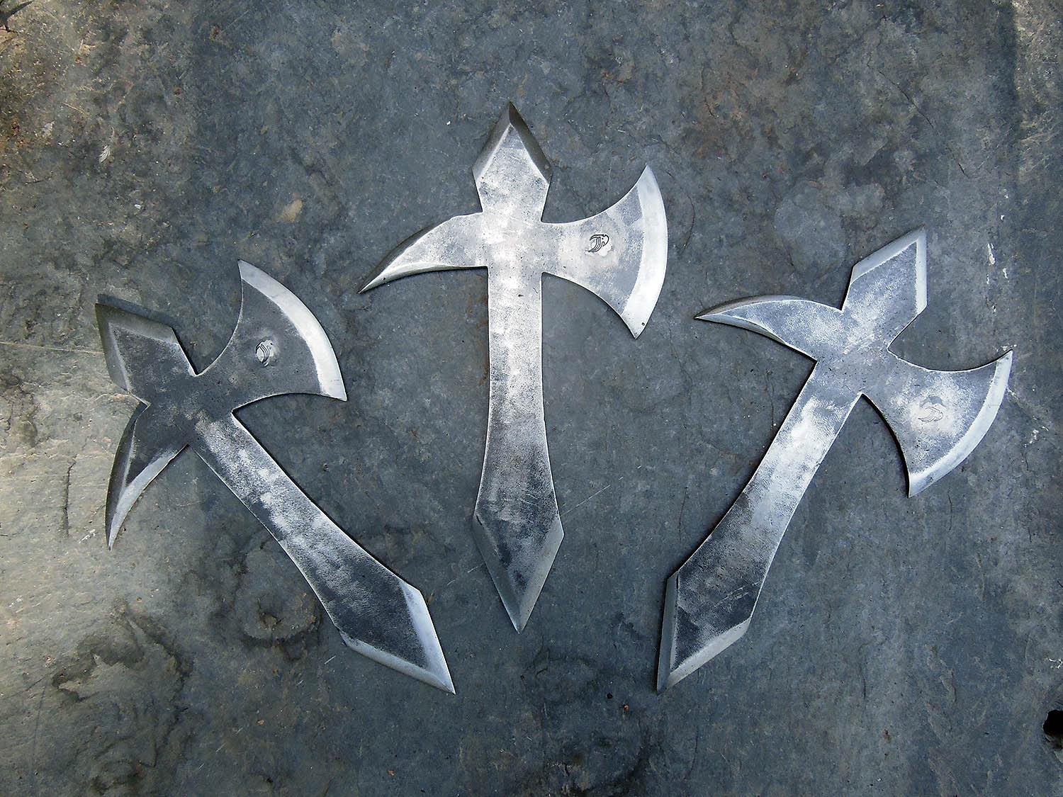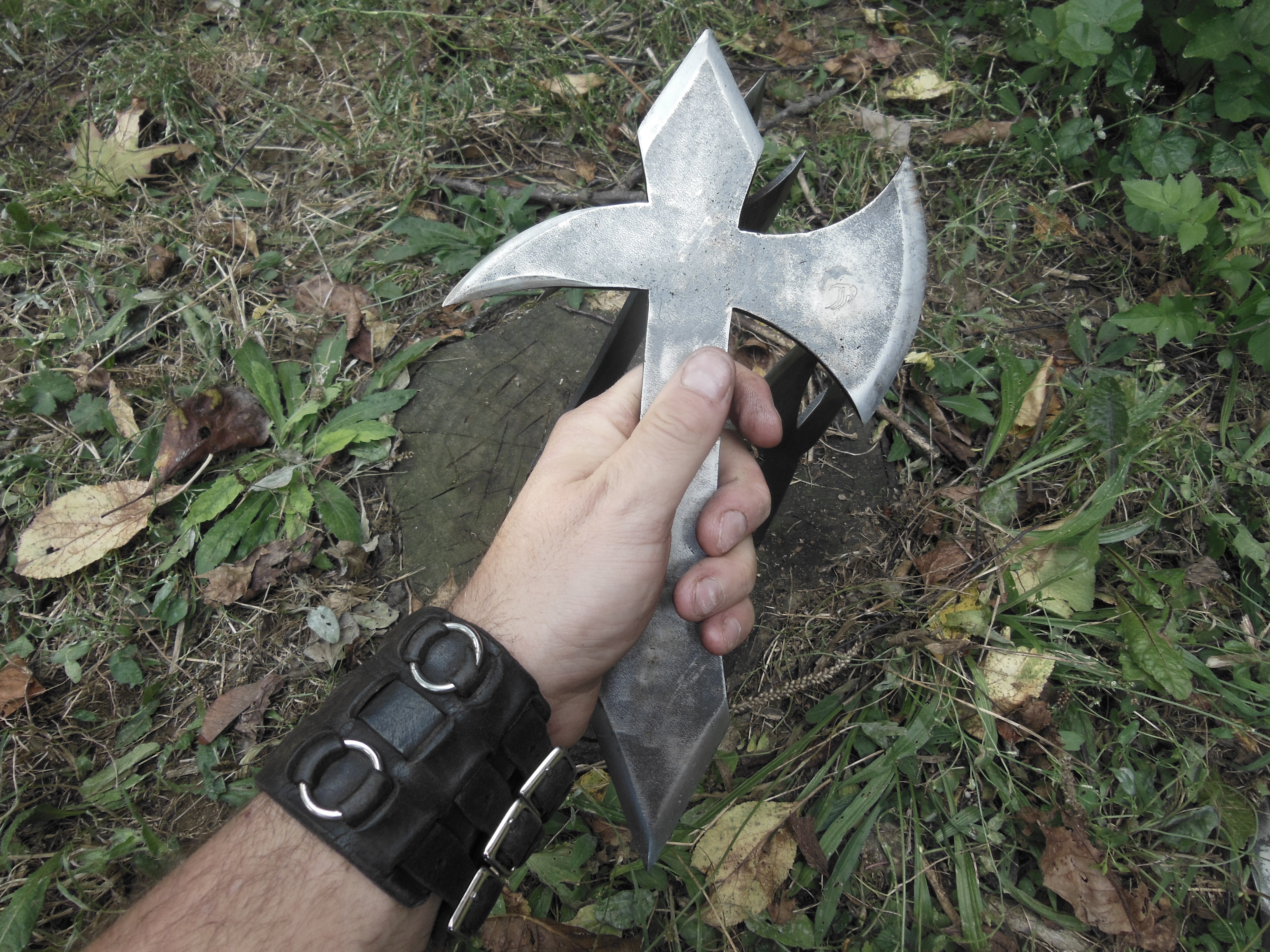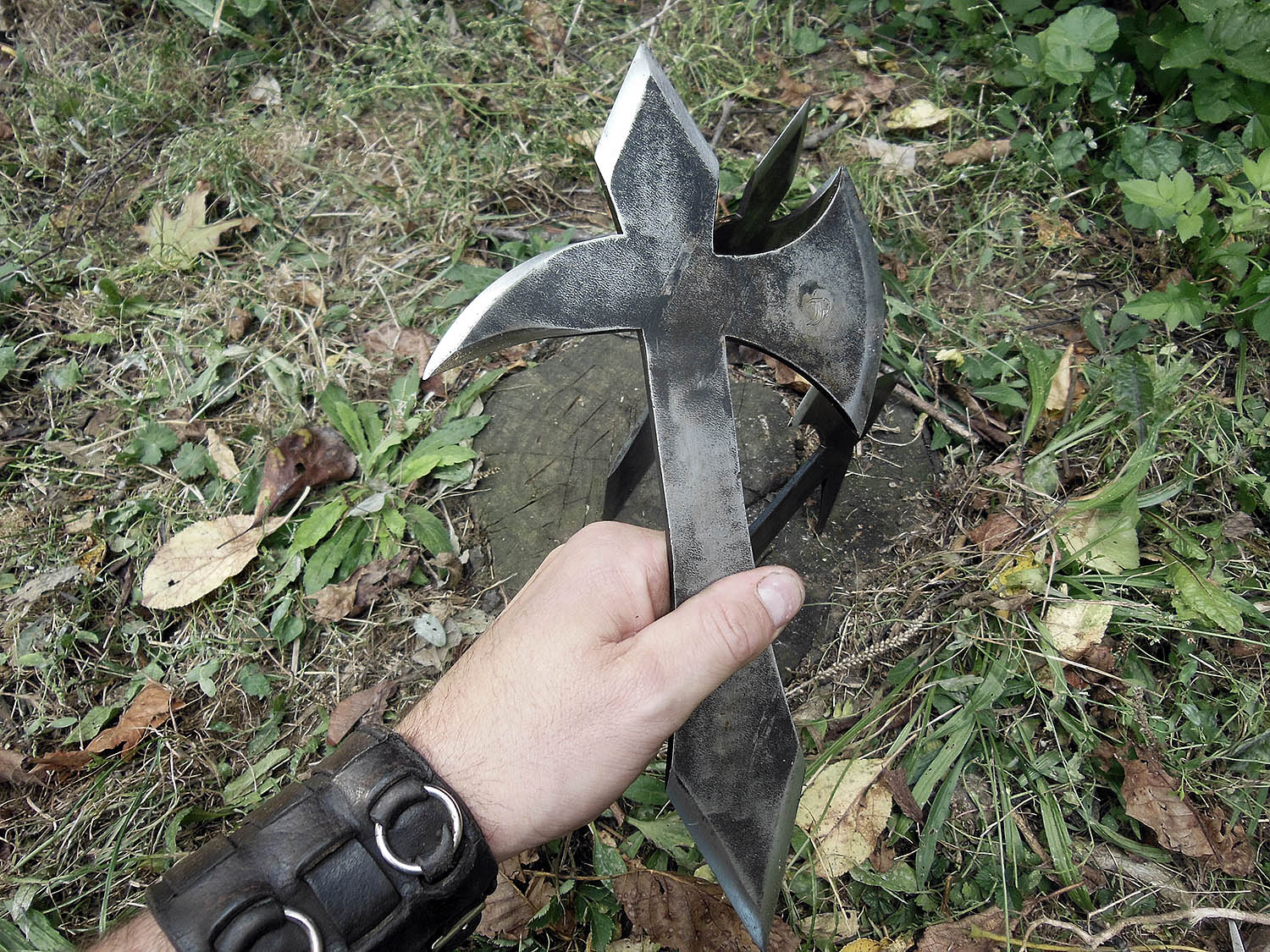 Longueur totale 29cm - largeur 15cm - poids : 395g - acier XC60 (solide et facile à affûter) Impossible de rater sa cible :)