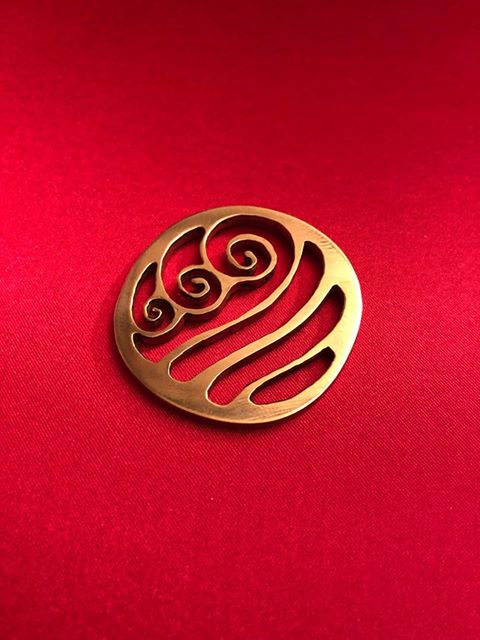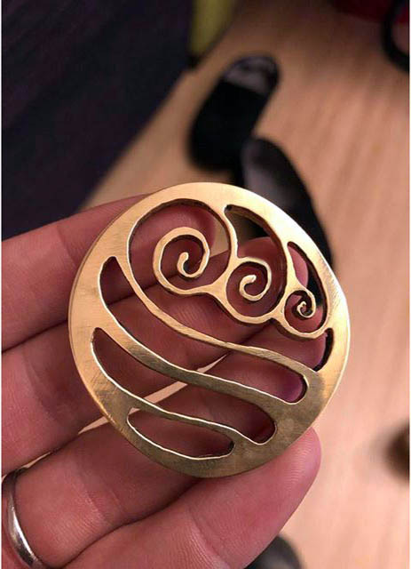 Bijoux réalisé à la main (lime et huile de coude) dans du bronze pur. Diamètre 45mm, épaisseur 3,5mm.