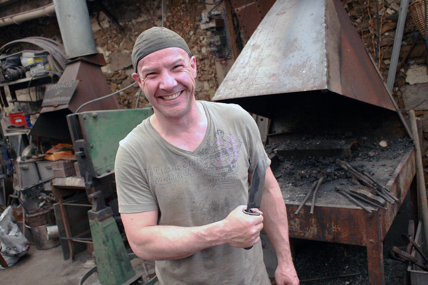 Déjà coutelier, Loïc est venue perfectionner son art du travail au marteau !!!