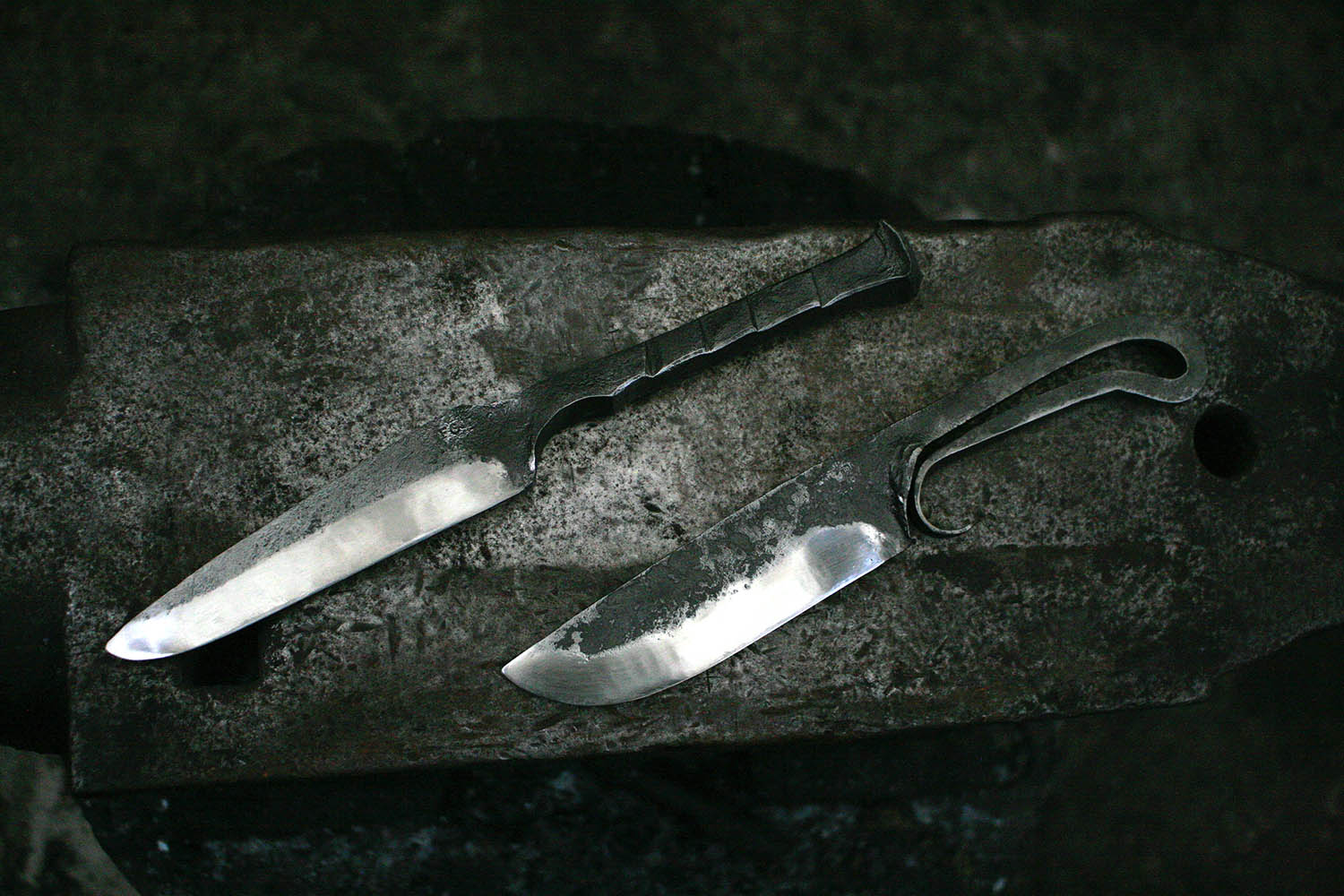 Pour ce stage de forge au programme, 2 belles lames superbement forgées et originales. Je vous laisse découvrir le travail effectué par ces valeureux forgerons !!!