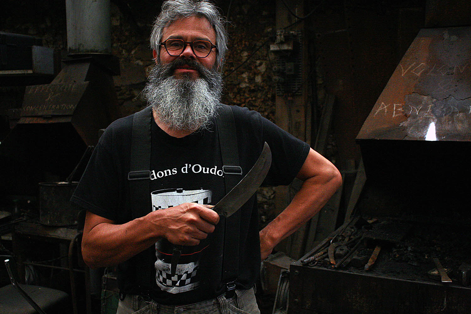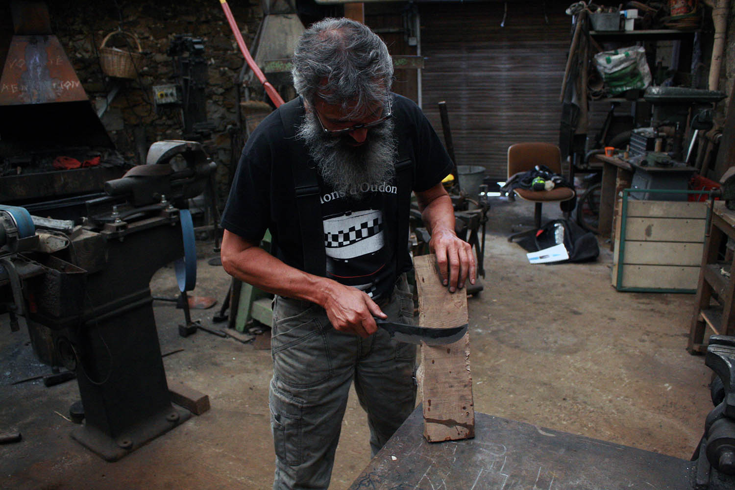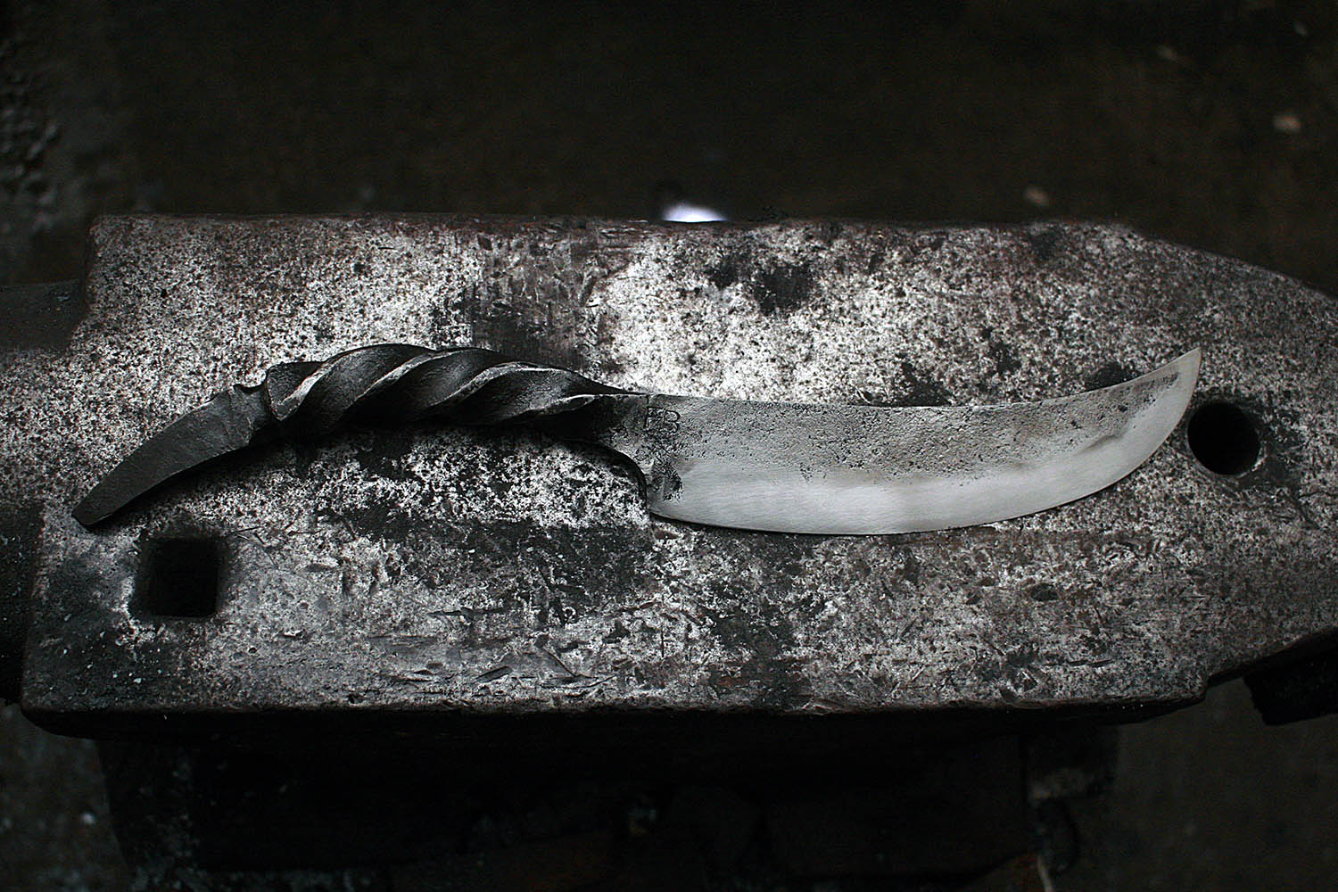 Specialiste des maquettes à but professionnelles, Fred a eu comme cadeau d'anniv' un passage par ma forge. Au programme un couteau enorme et un outils pour réaliser des rcuhes troncs pour sauver les abeilles. Au top !!!