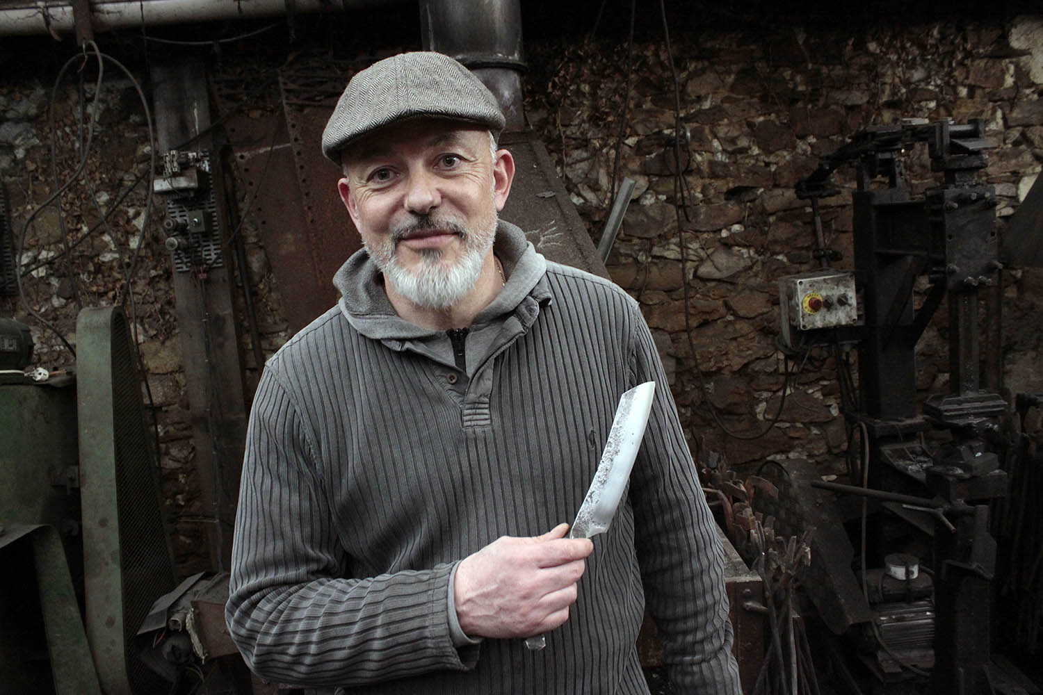 Passionné de reconstitution, de spectacle et d'équitation, ce jeune forgeron est venu faire son premier stage de forge pour réaliser ce gros couteau brut de forge.