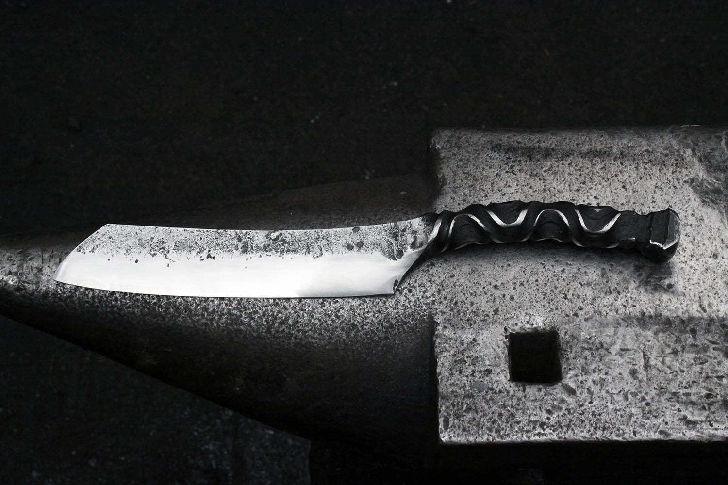 gros couteau brut de forge avec pommeau personalisé