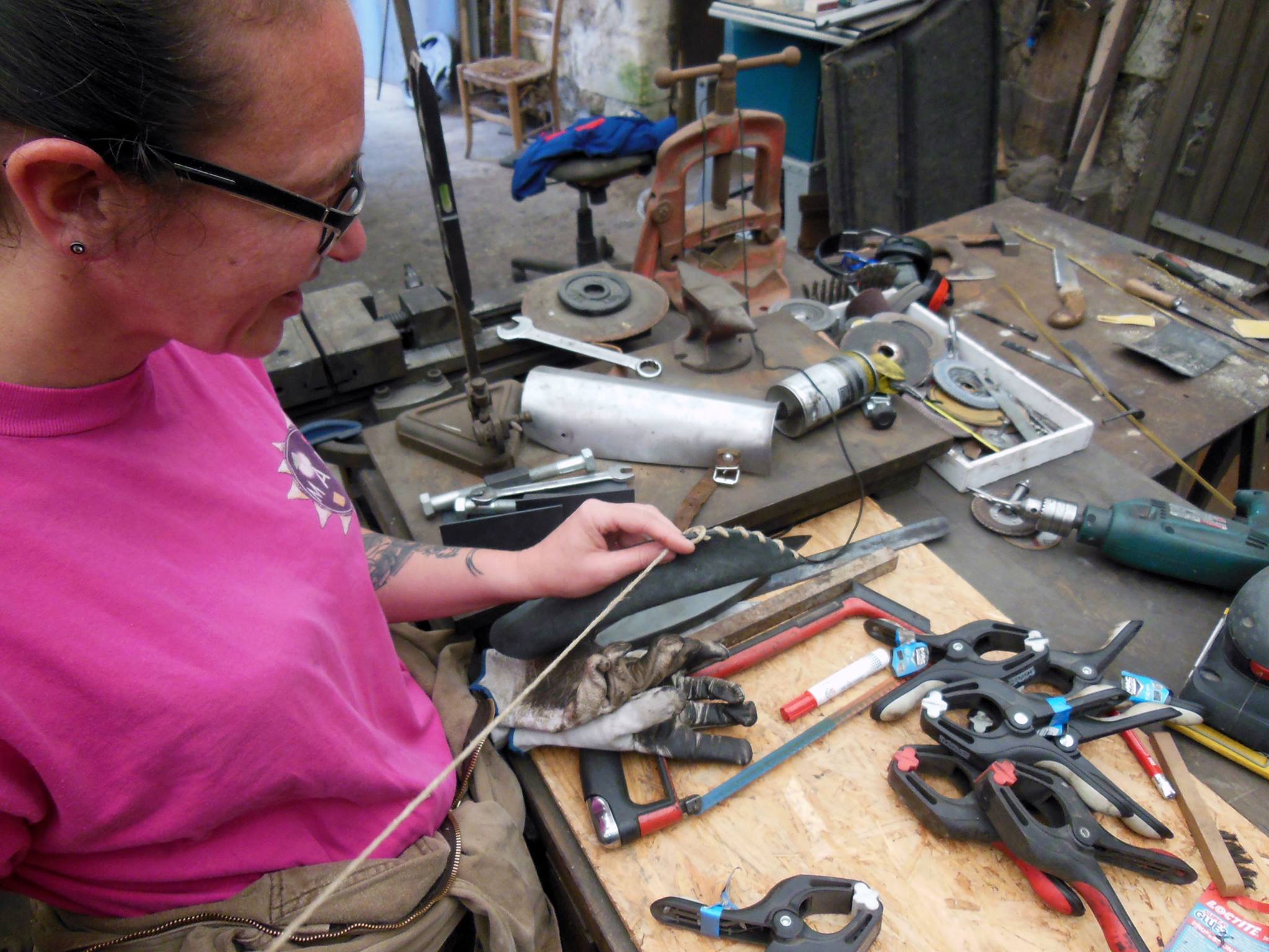 Madame est venue avec une grande expérience des ateliers et des machines et voulait s'essayer au marteau et au feu. Merci à son monssieur pour le cadeau ! C'est un peu grace à eux que j'ai commencé les stages