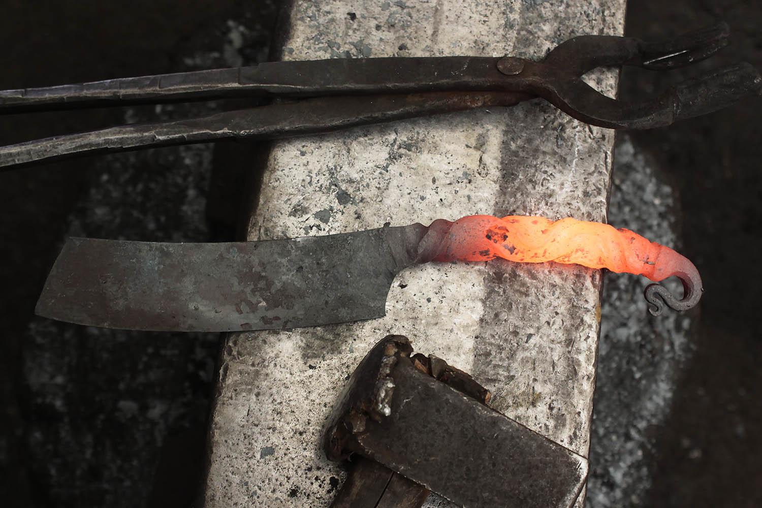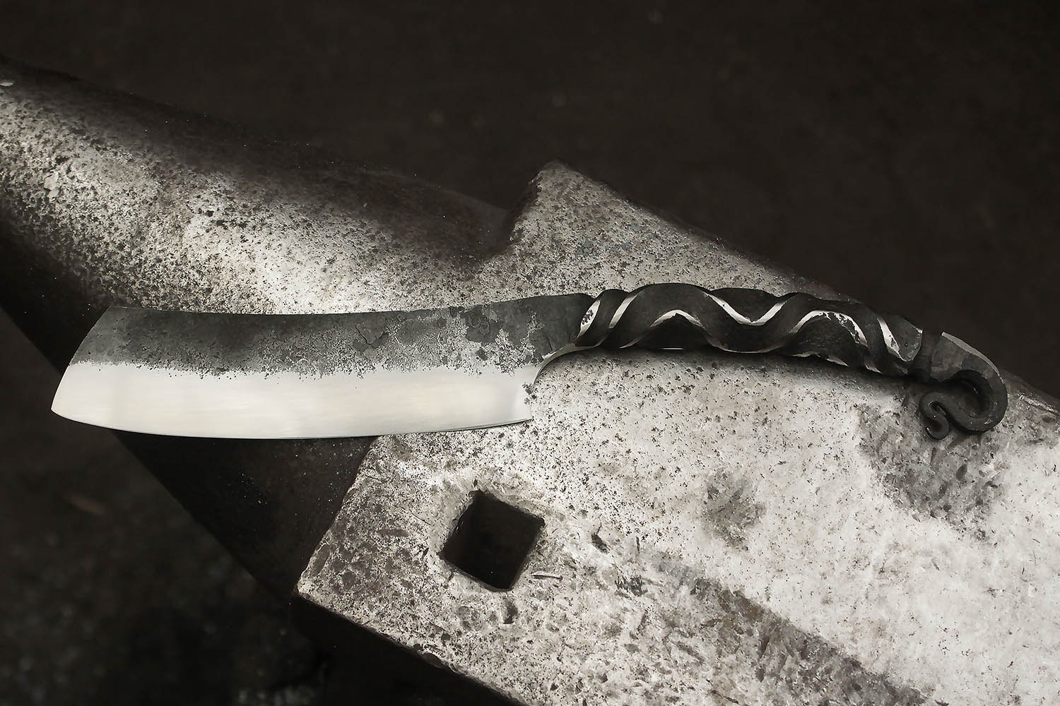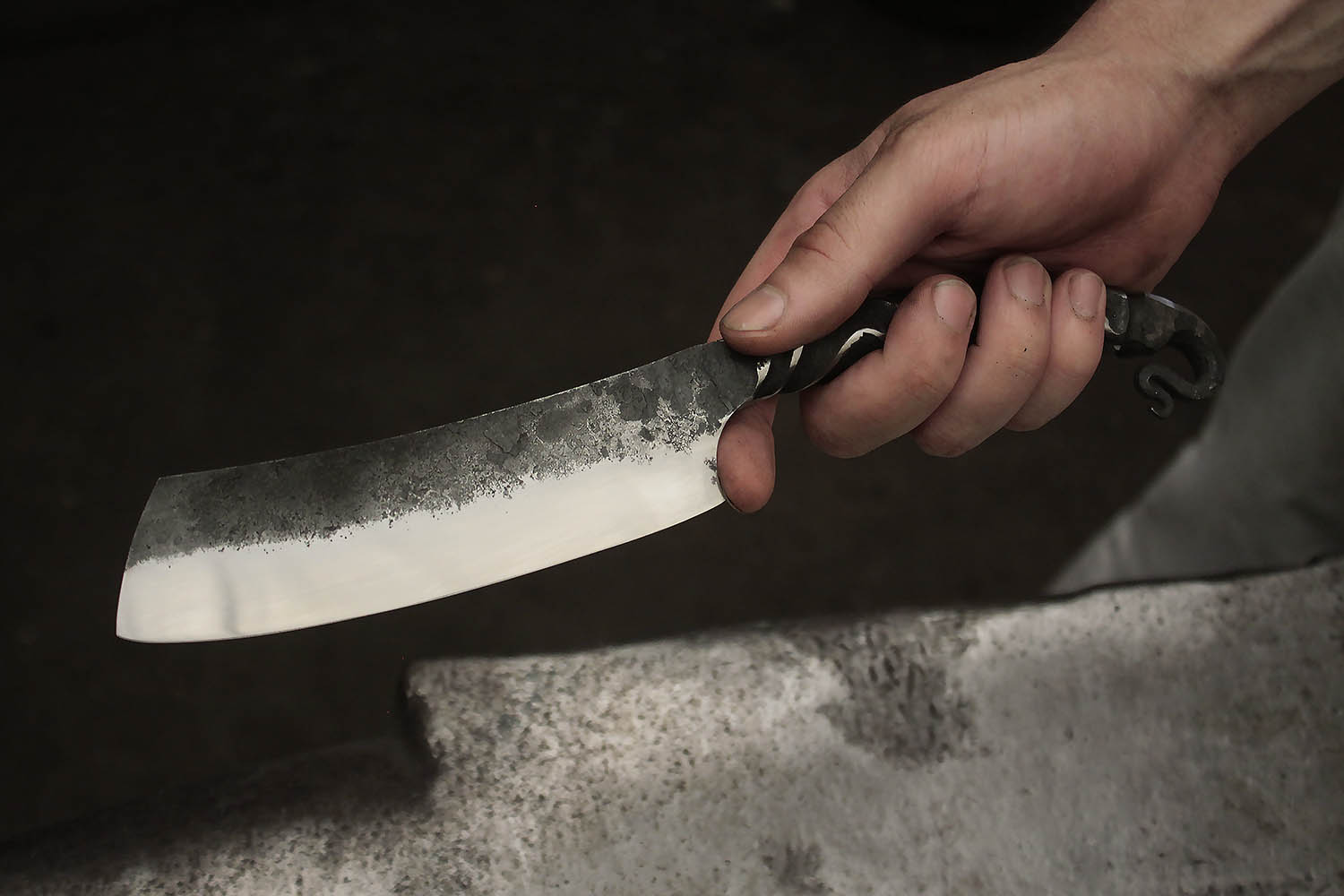 Au programme, un énorme couteau forgé tout en courbe et en classe. Bien joué !