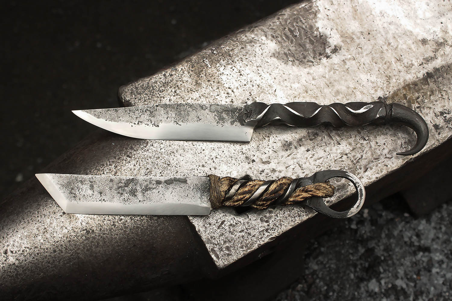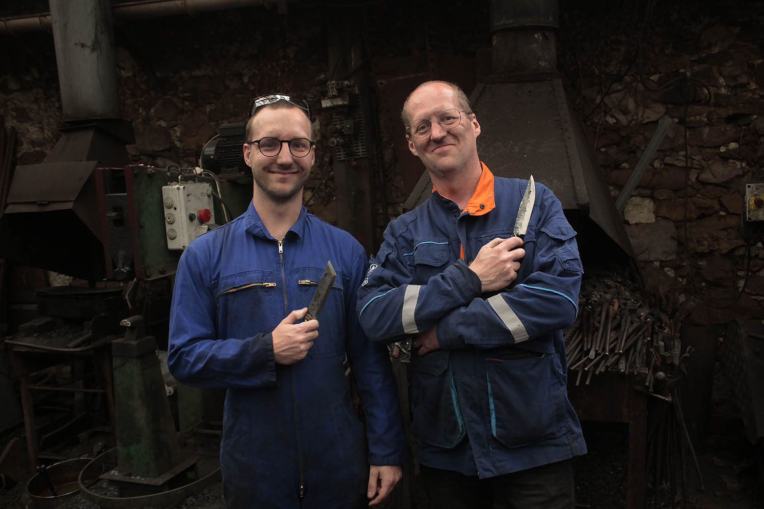 Bastien à invité son Pierrick à passer un moment père-fils à la forge. Au programme, 2 lame forgées comme on les aime. Une inspiré d'un tanto, et l'autre avec un profile de type Laguiole.