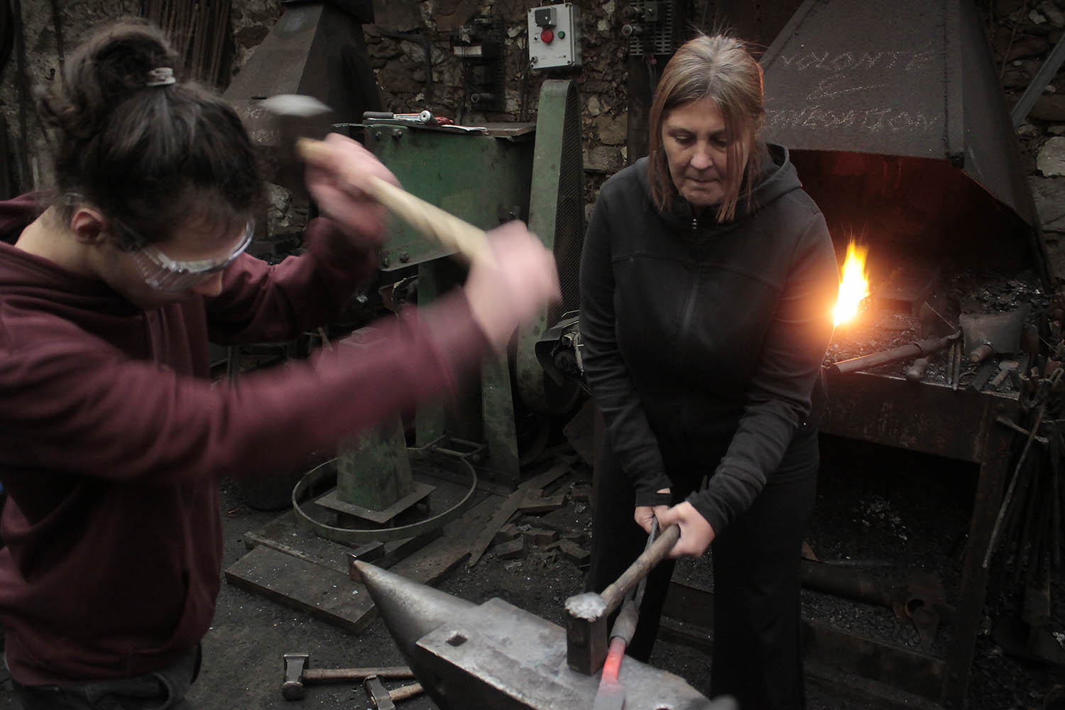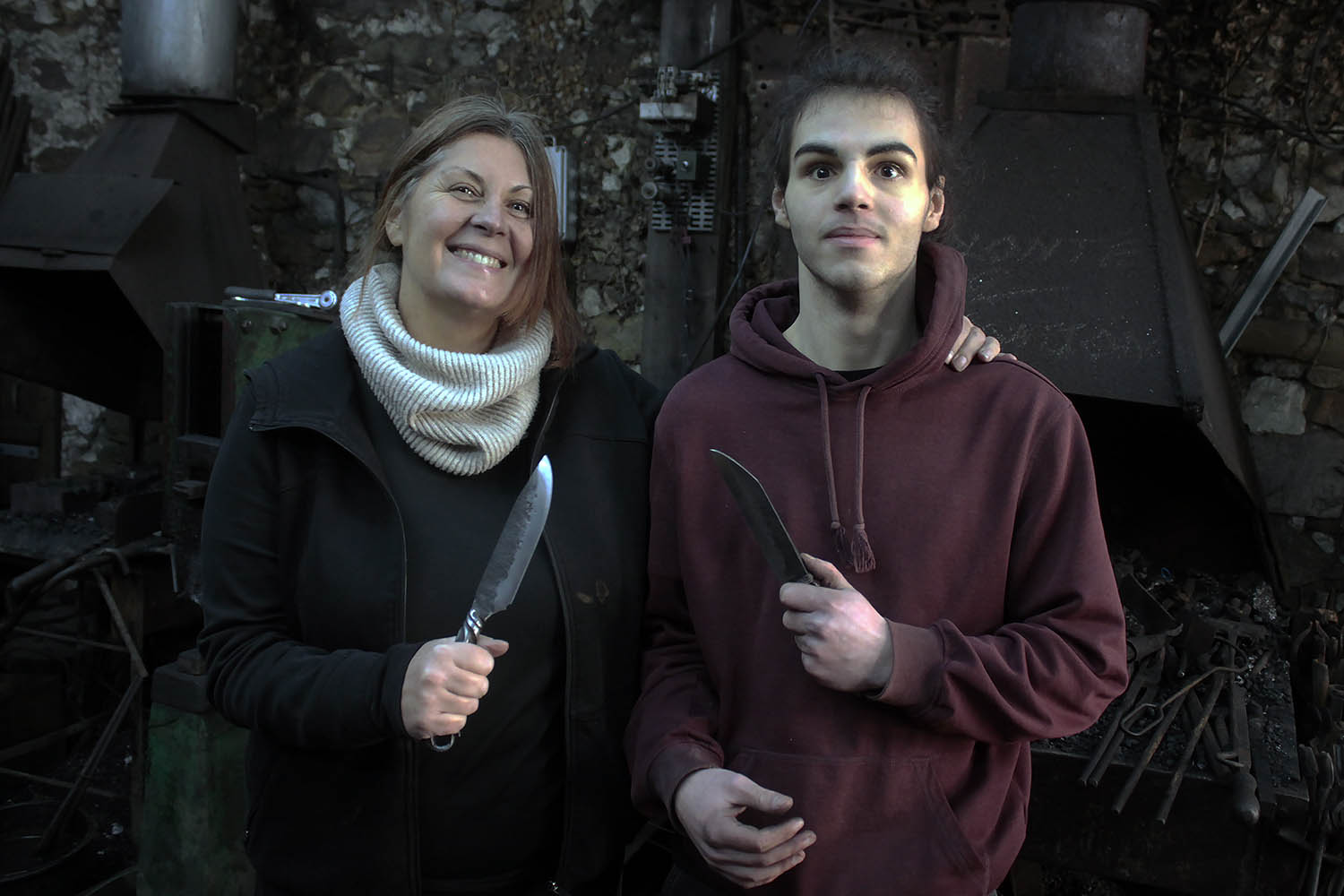 Mère et fils pour un premier stage de forge.