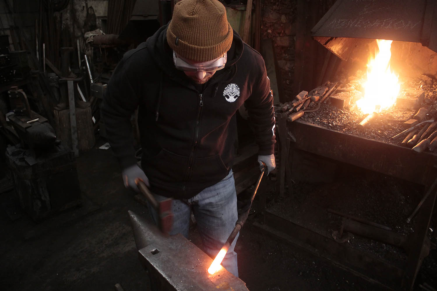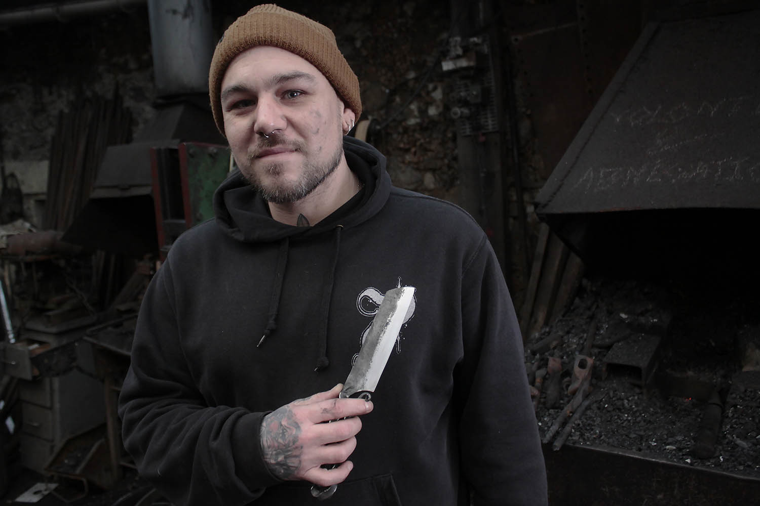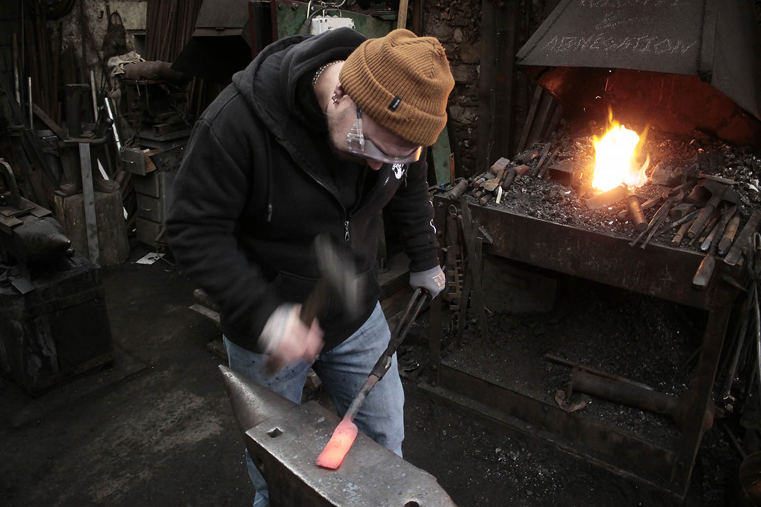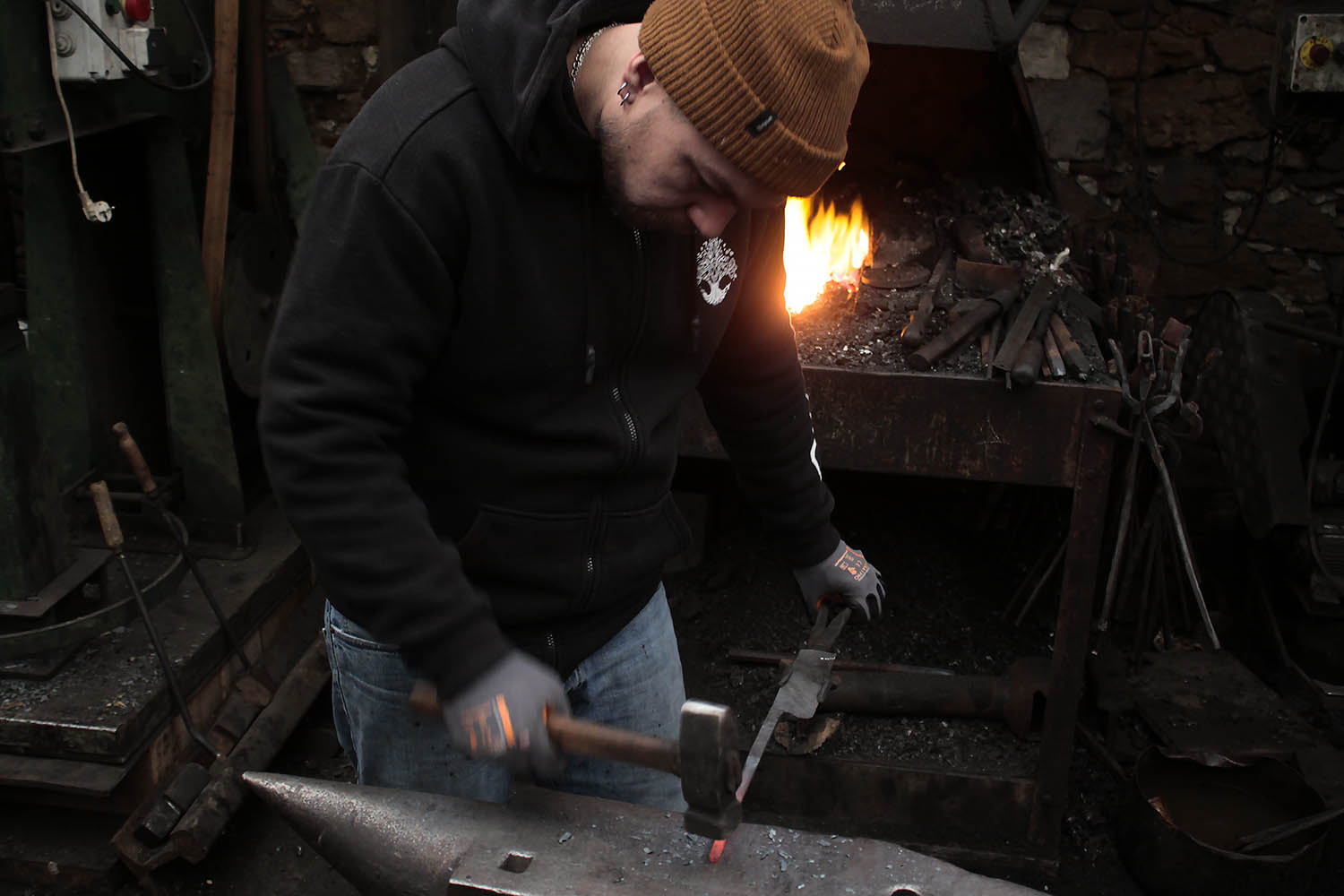 Tatoueur et artisan, Nicolas vient se tester sur un serieux couteau.