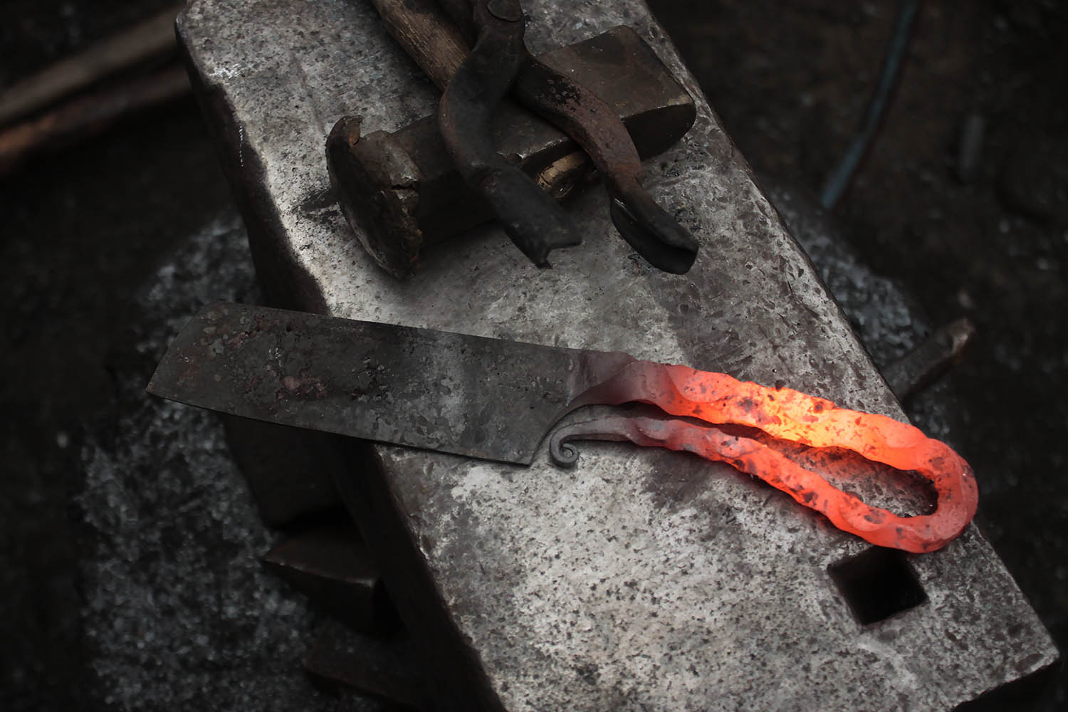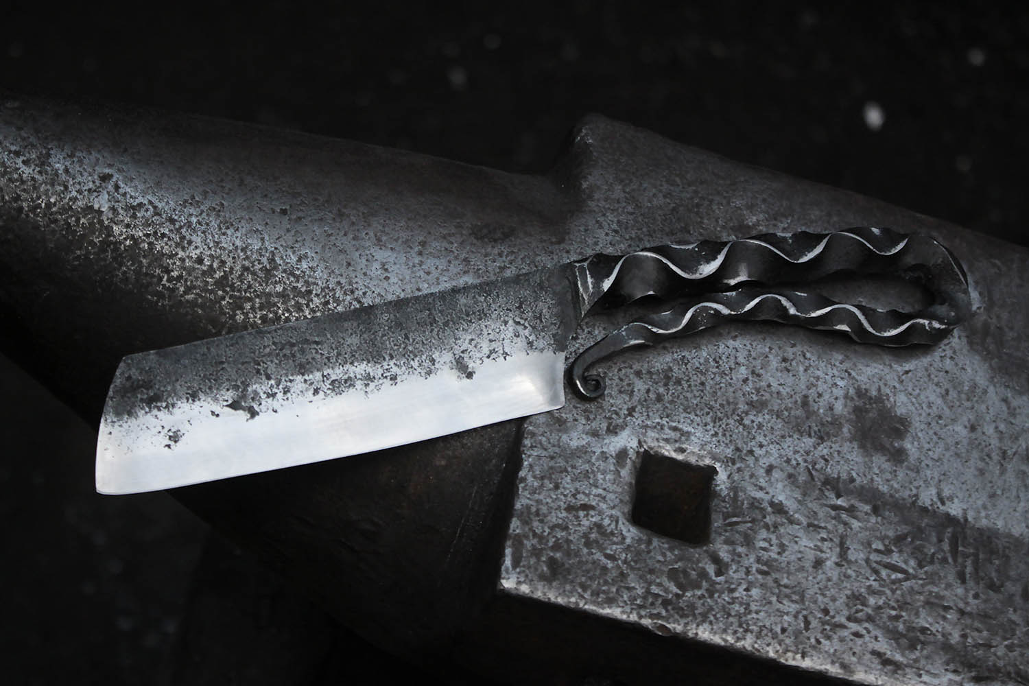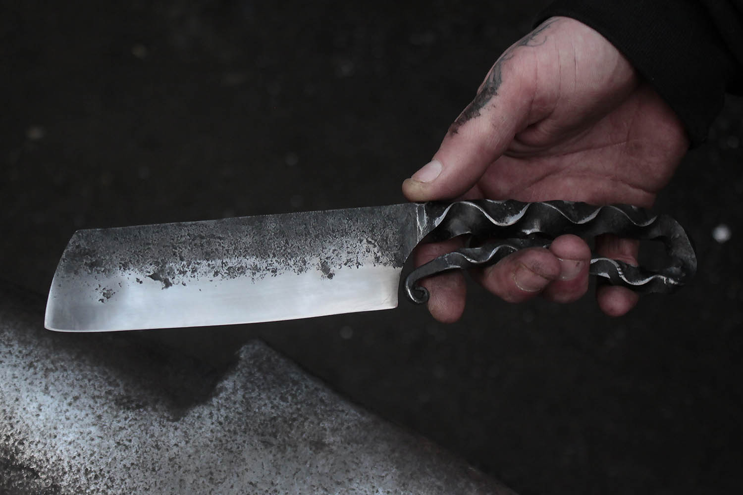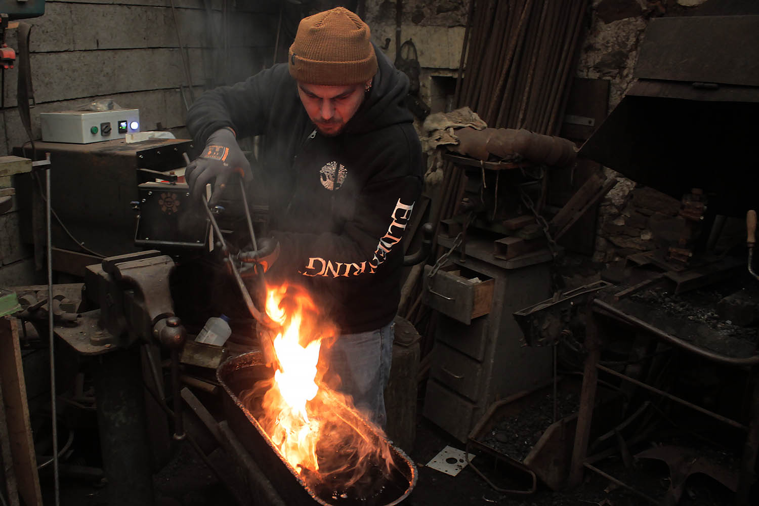 Tatoueur et artisan, Nicolas vient se tester sur un serieux couteau.