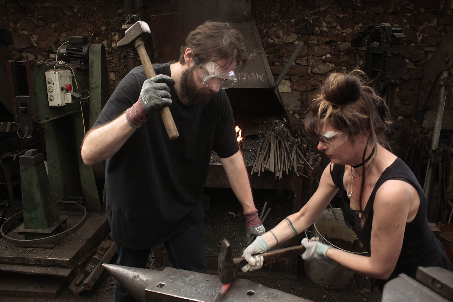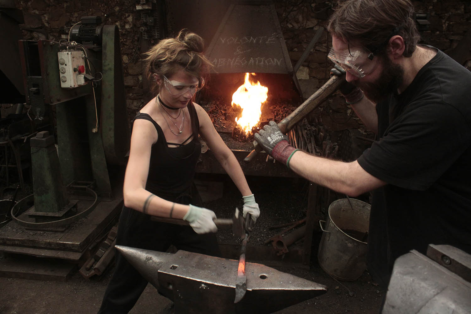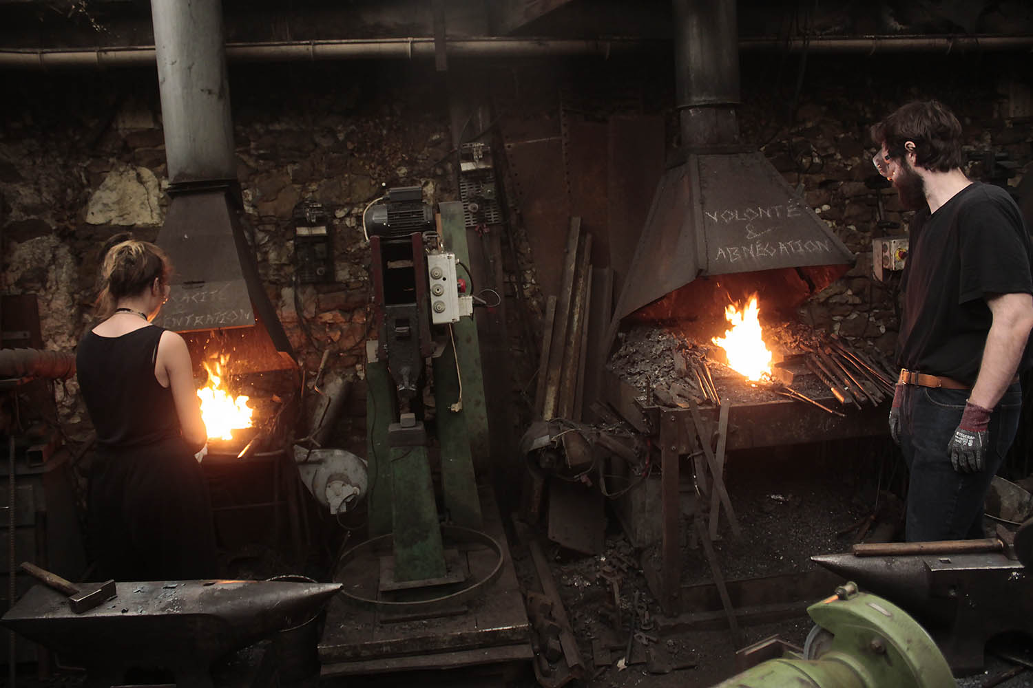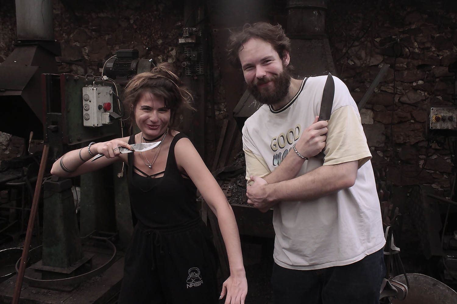 Raphaëlle m'a contacté pour organiser ce stage de forge pour elle et Johan. 2 concept-artistes pour 2 couteaux brut de forge. Un vrai régal.