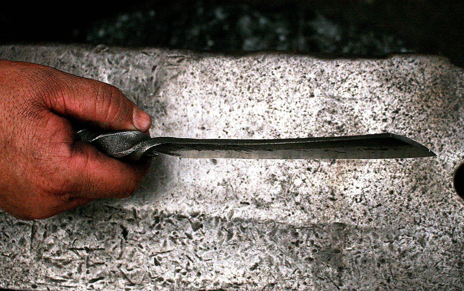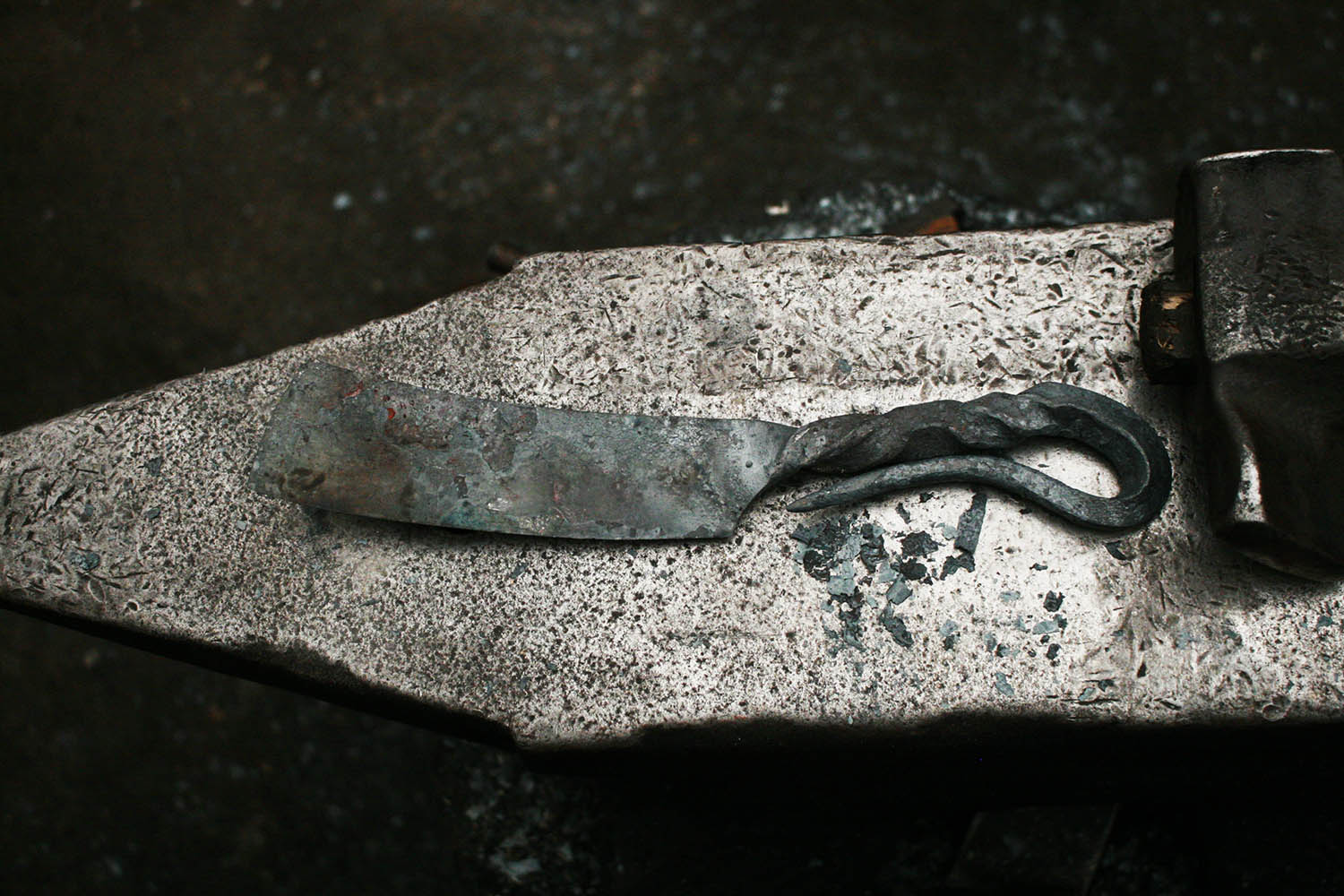 Laurent a décidé se forger une lame tres atypiques. Un stage de forge qui a donne un couteau brut avec l'avant est plus massif que l'arrière. Vous n'imaginez pas l'efficacité du truc !!!