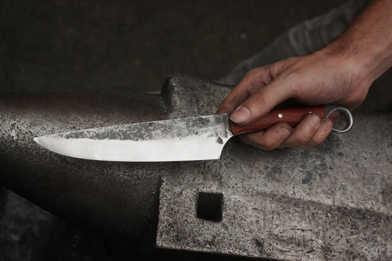 Medecine et forge, ca envoi ! Couteau brut de forge avec manche en padouk aux lignes terriblement agressives. Parfait pour ... un peu tout