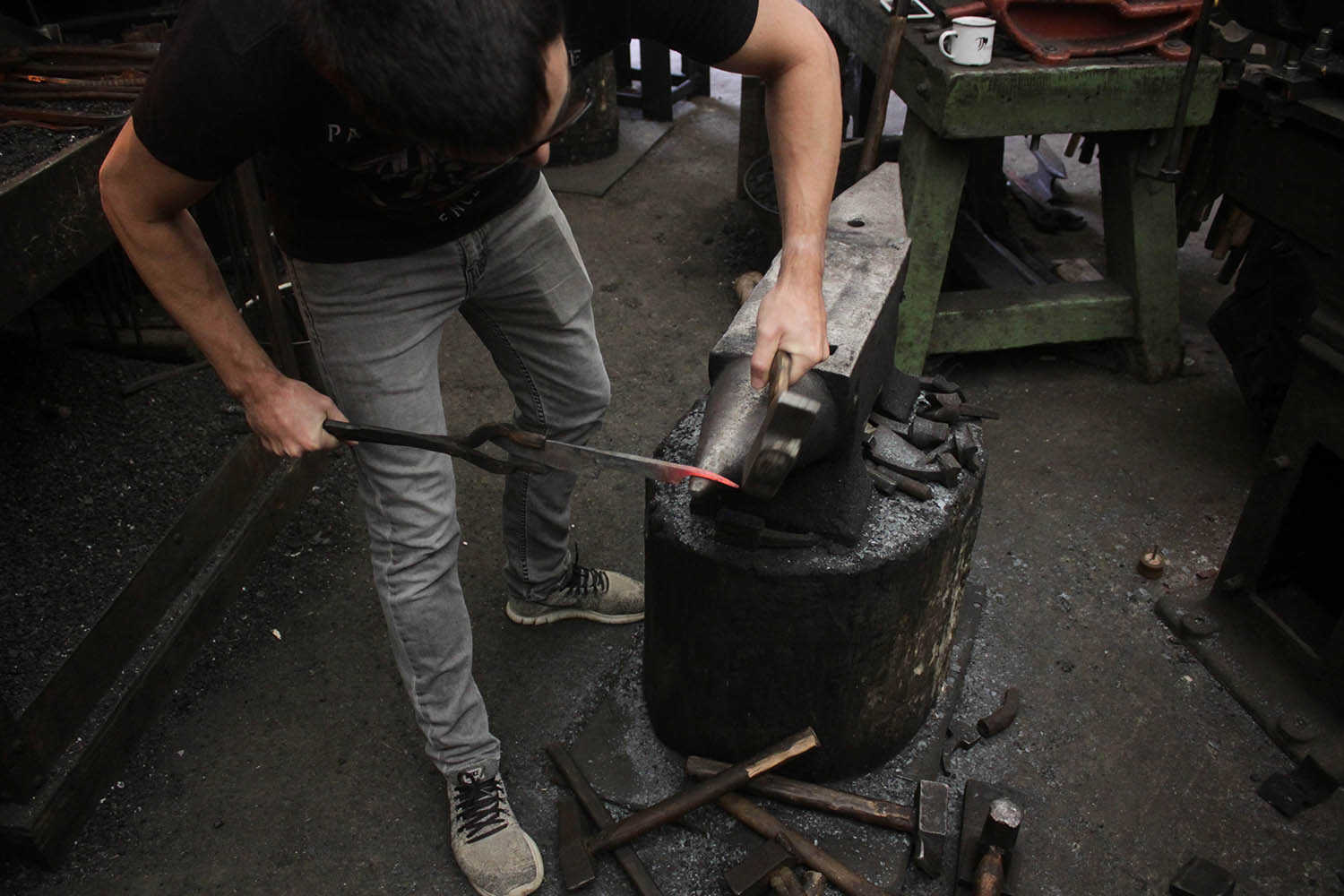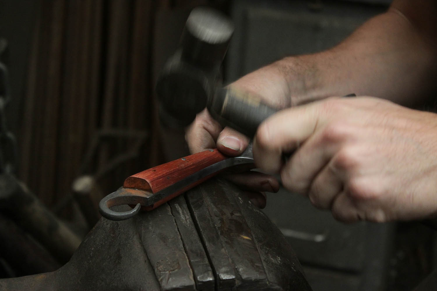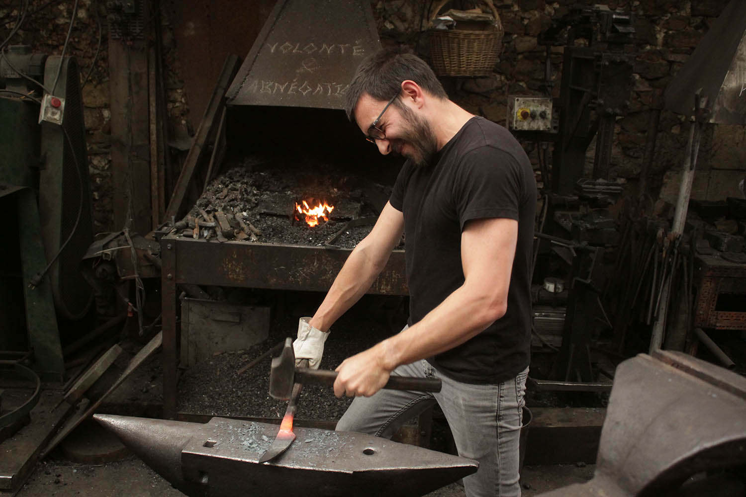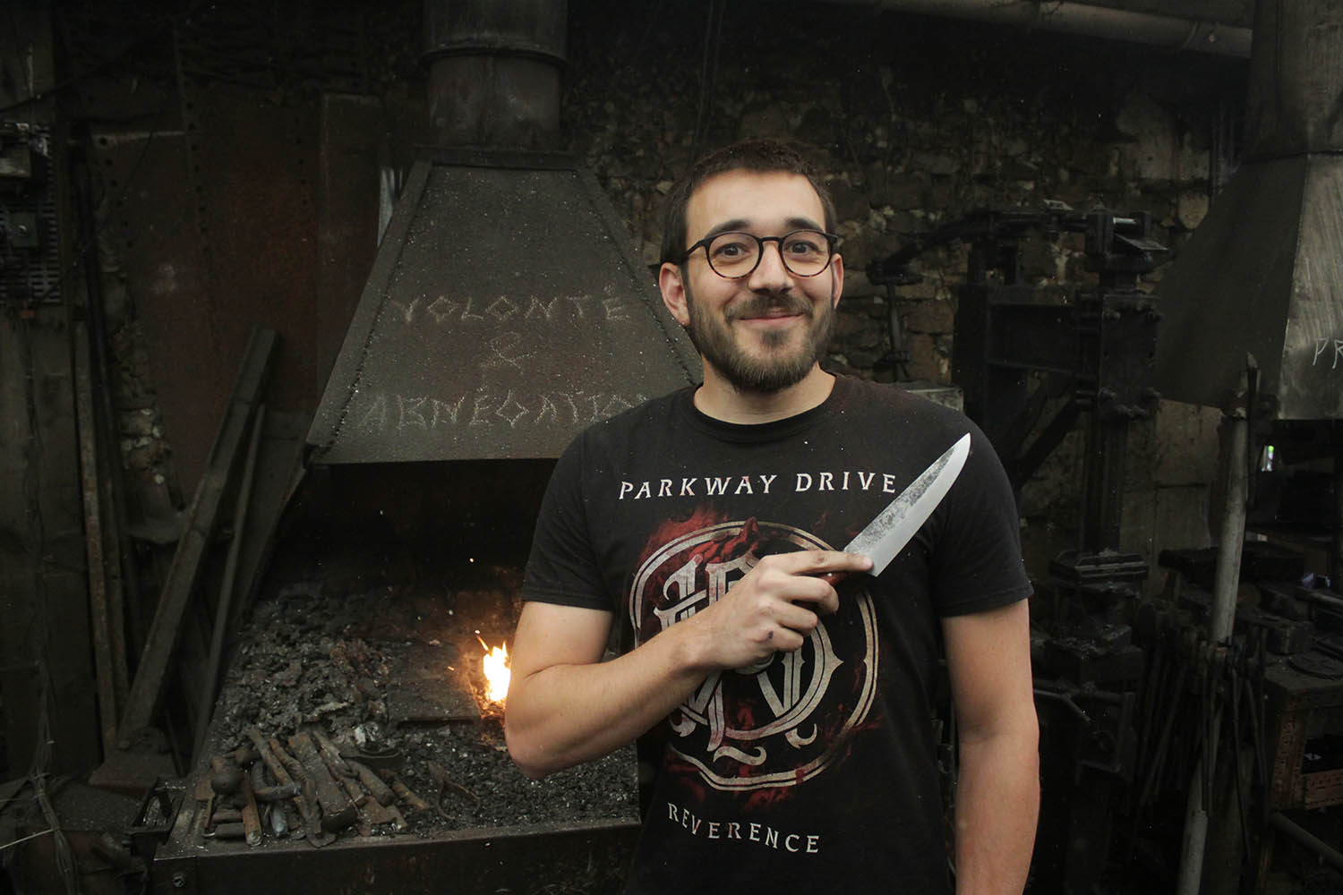 Medecin urgentiste et passionné, Martin a eu comme cadeau de venir jouer avec le feu et les enclumes. Du beau travail sur ce couteau brut de forge.