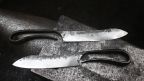 Ces couteaux sont réalisées avec des pointes effilées et des manches entièrement façonnés au marteaux. Pas d'usinage, pas de torsades ou de design trop complexe. Uniquement du travail sur la géométrie et la prise en main.