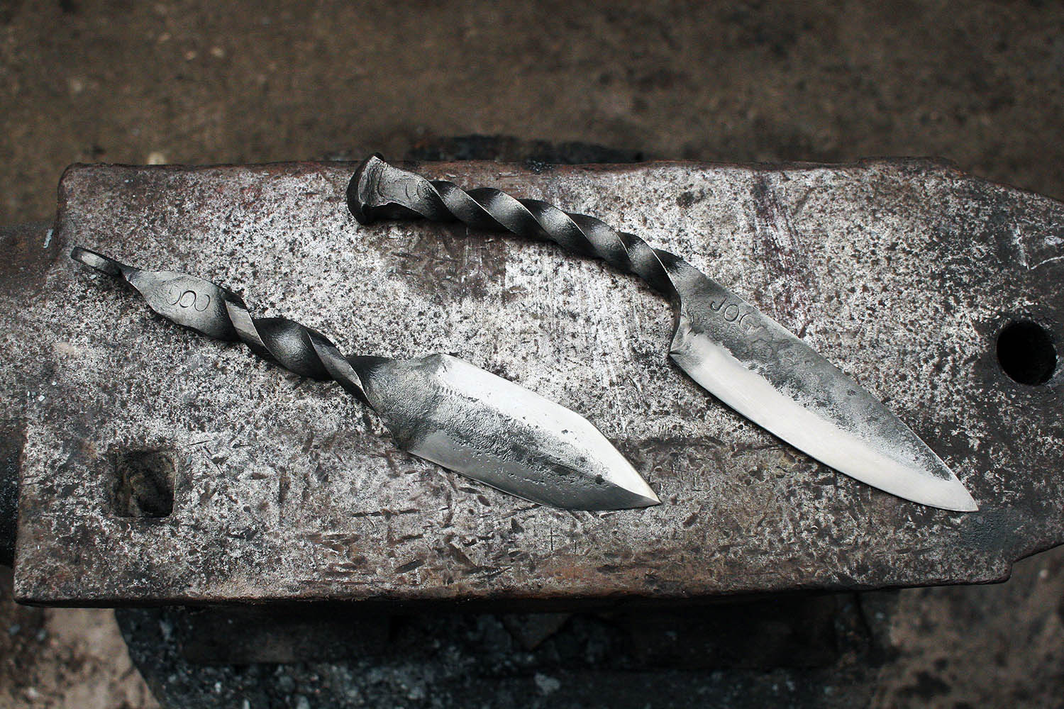 Stage de forge entre frêre et soeur. Complicité garantie ! Et forge de 2 superbes couteaux sacrément originaux