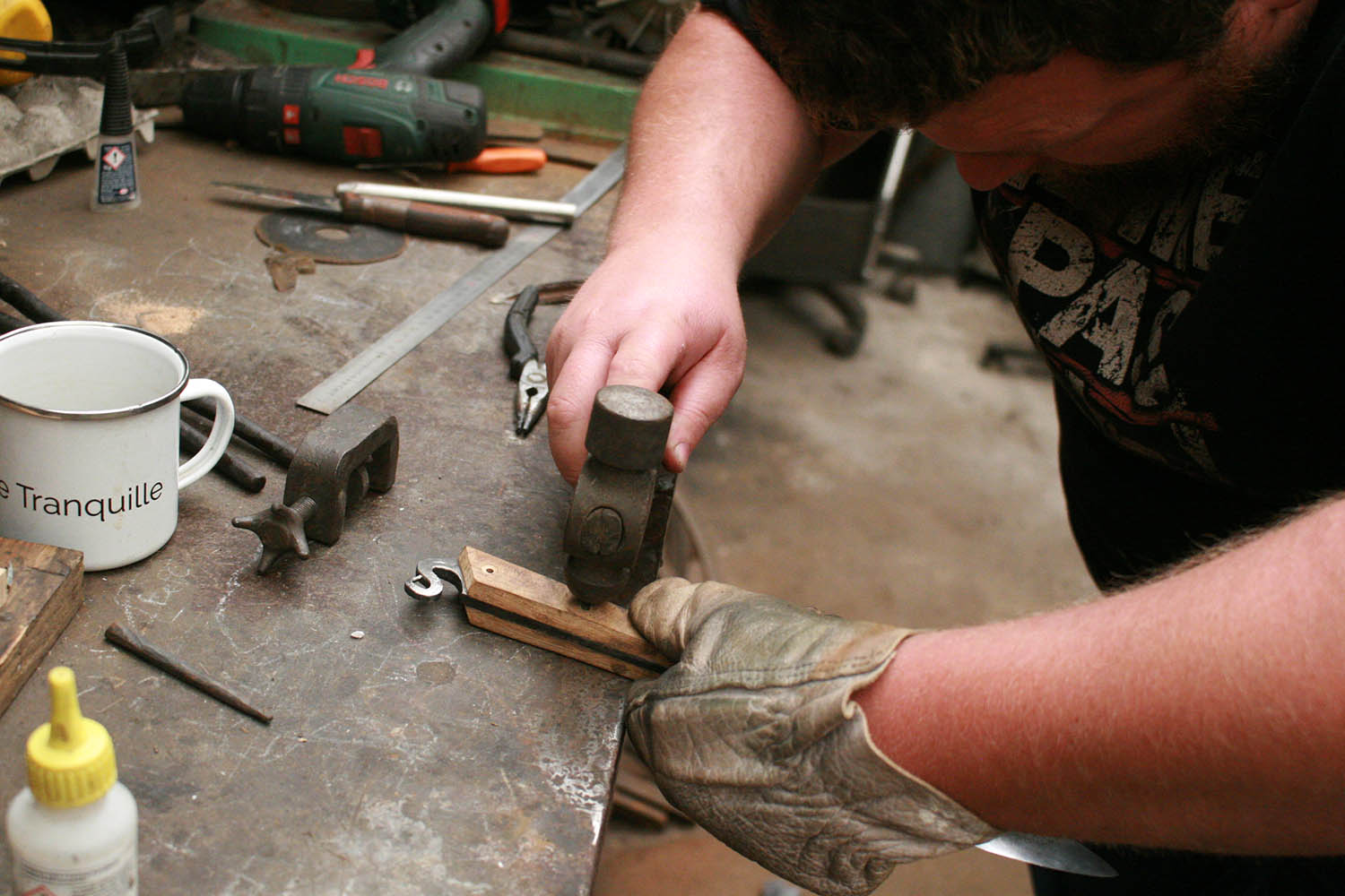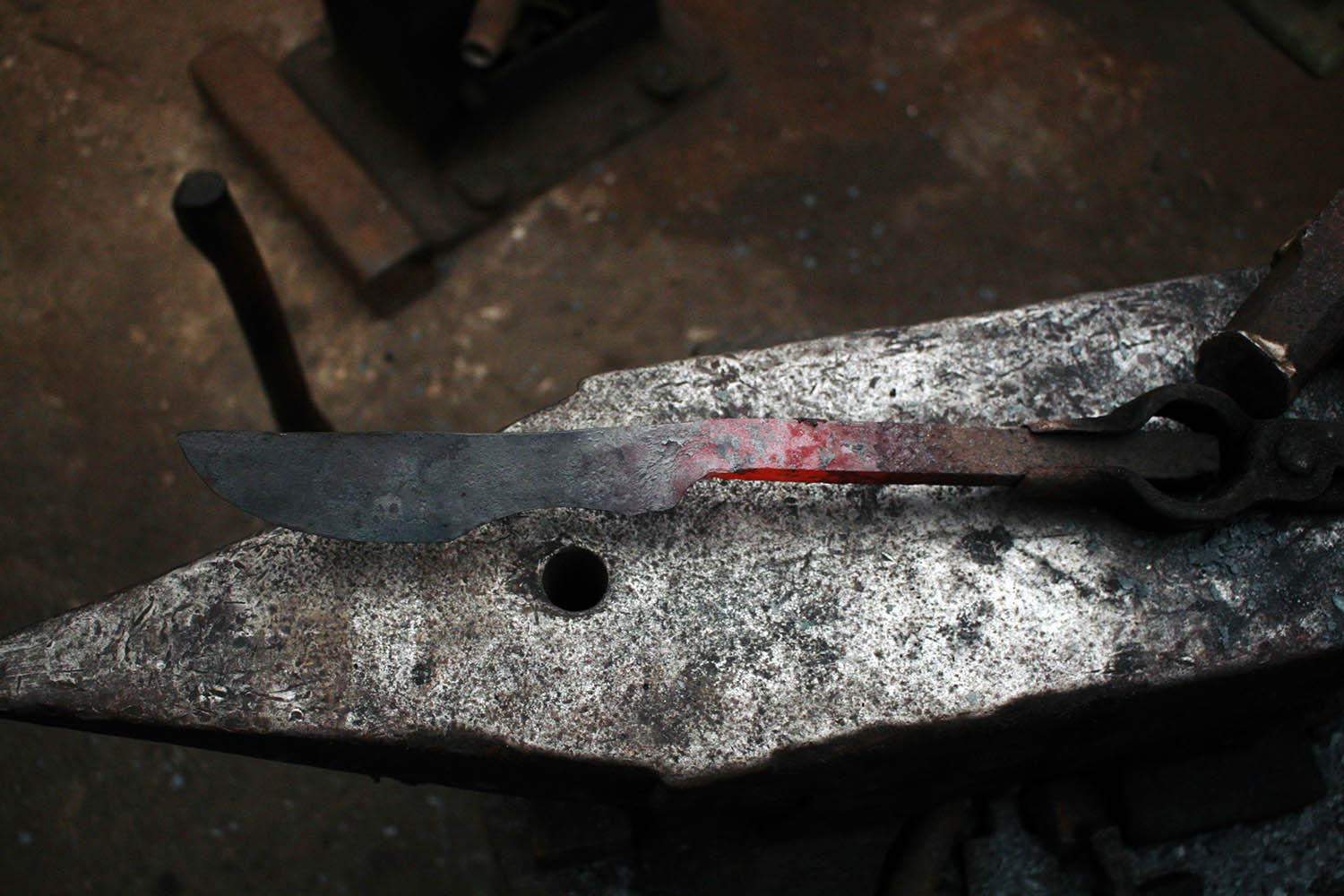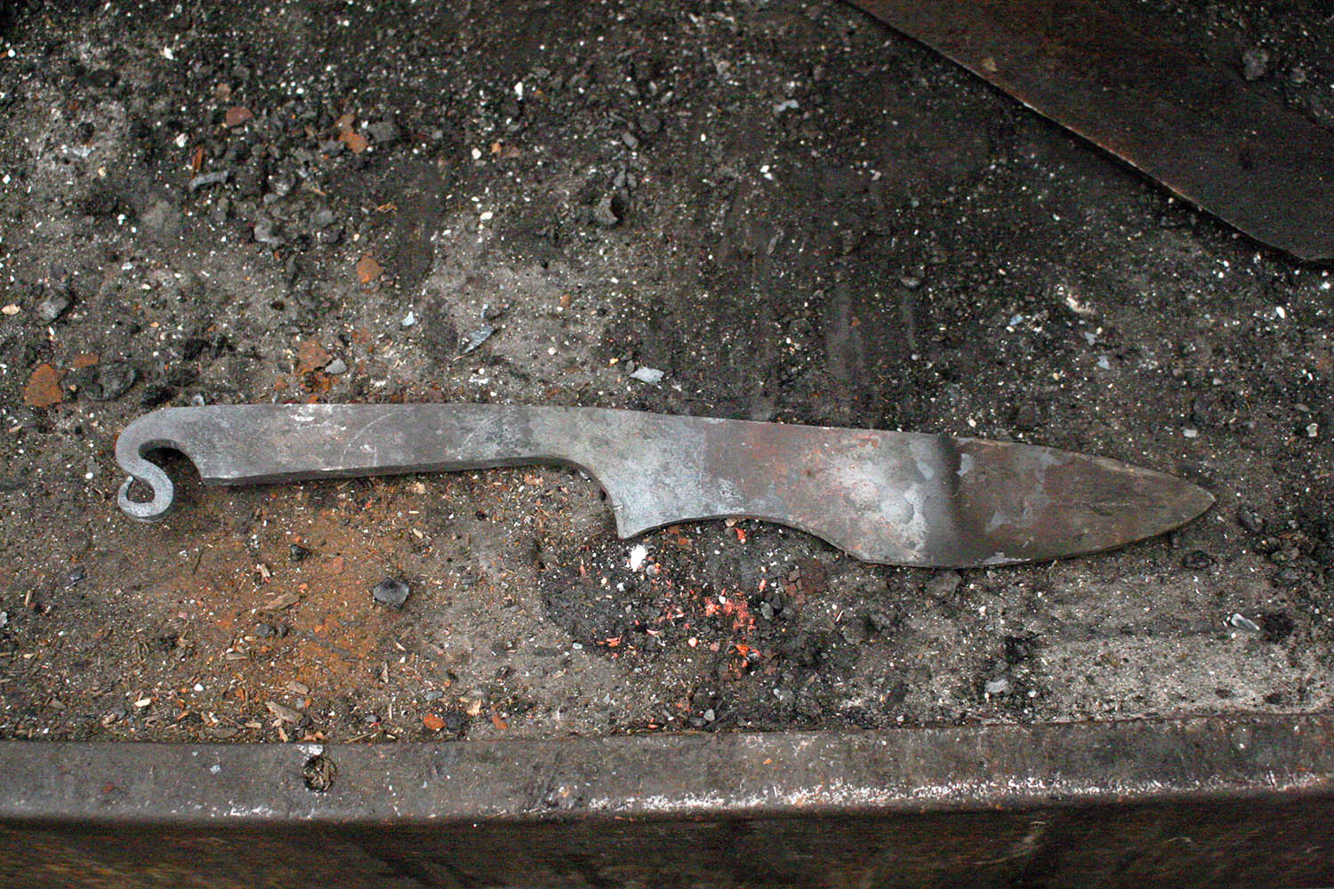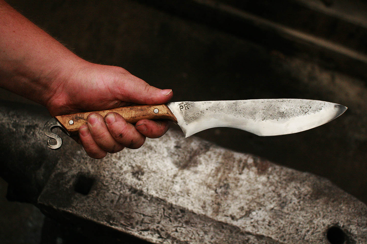 Envoyé en stage de forge par sa compagne, Rémy est vennu plein d'enthousiasme s'essayer au son du marteau et de l'enclume. Au programme, une tres belle lame et un bois superbe !