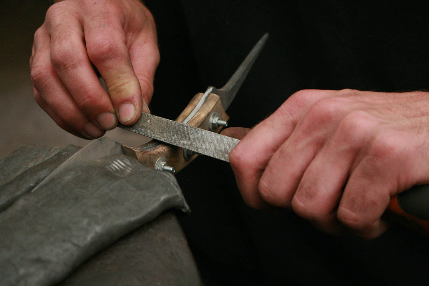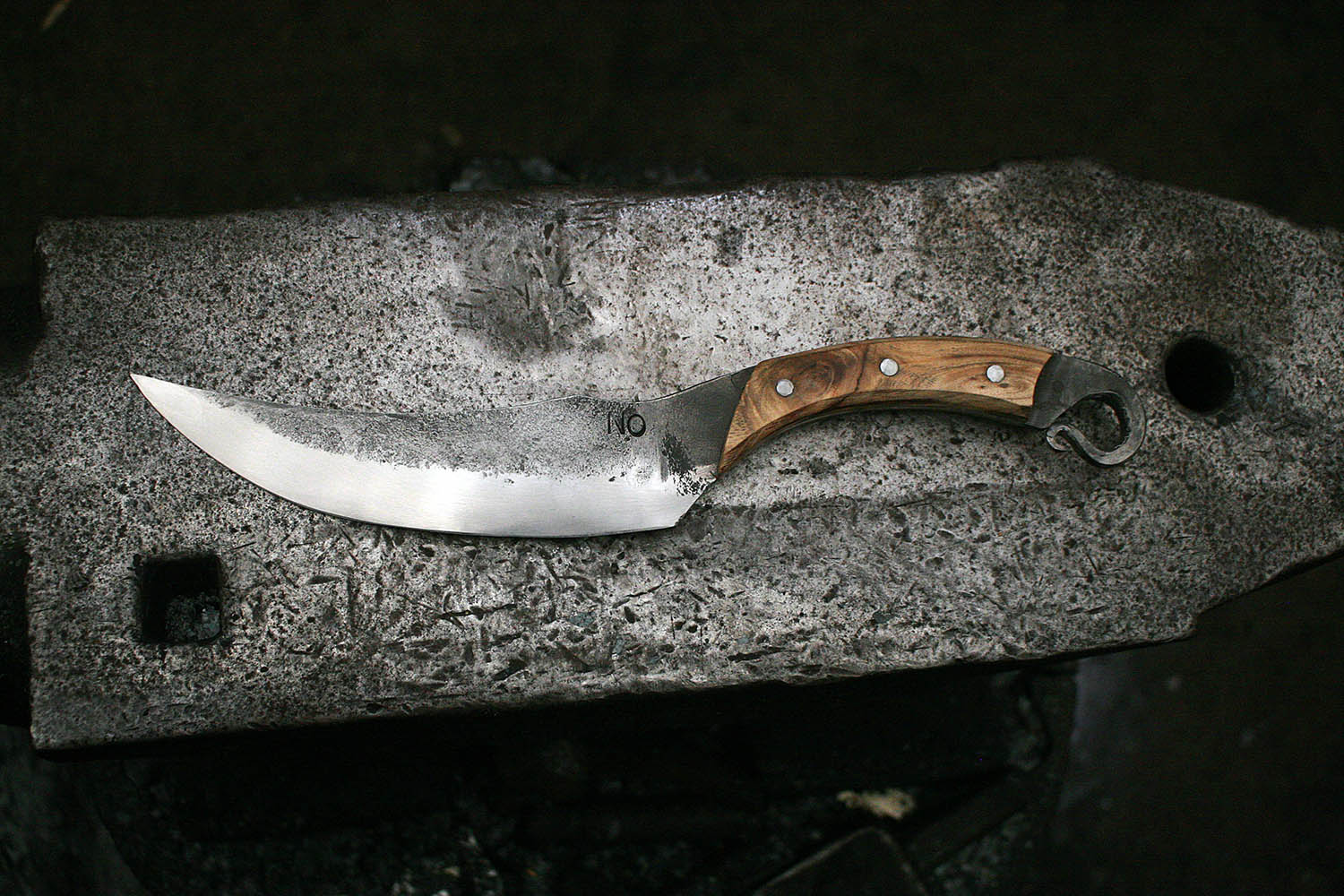 Nicolas voulait une lame bien à lui. Je crois que pour son stage de forge, on a reussi. Regardez-moi cette ligne d'une rare agressivité et d'une efficactité extrème !