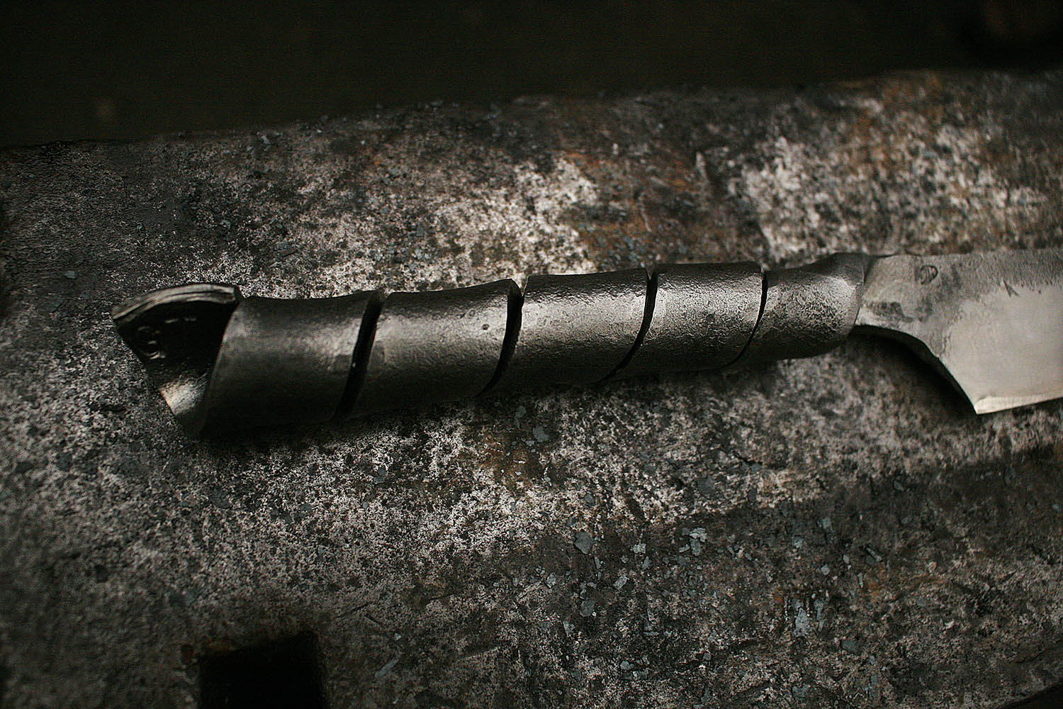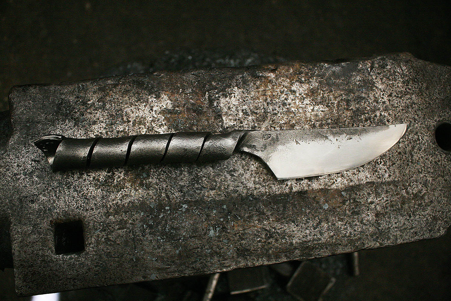 Second passage pour Julen qui est venu avec Gilles. Un tres bon stage de forge sur un couteau enroulé. Une première pour moi comme pour eux.