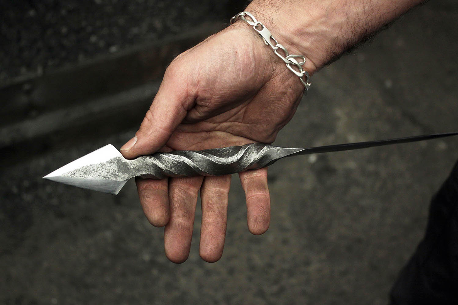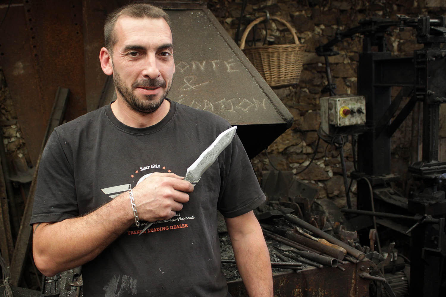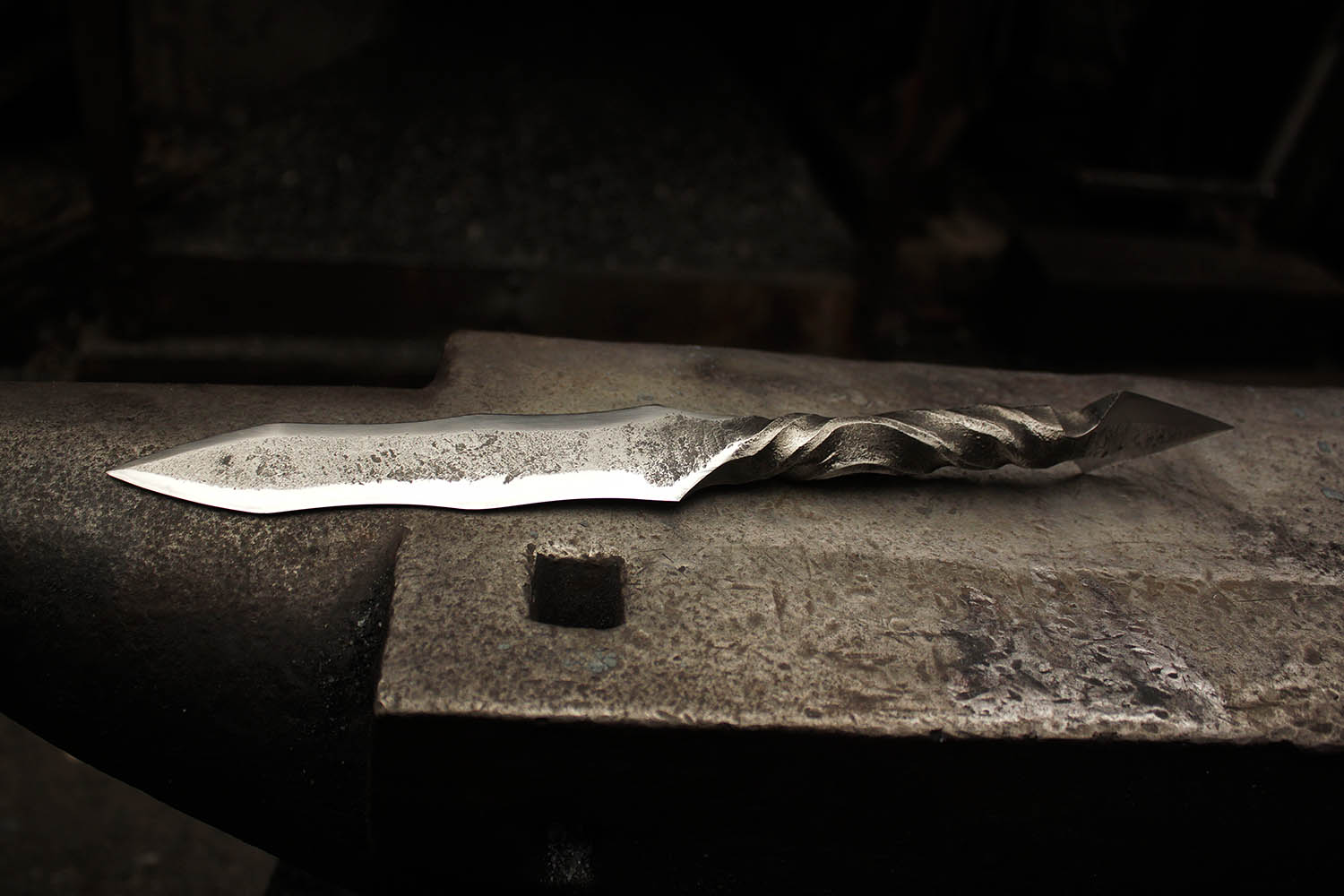 Souhaitant une lame unique Alexandre a eu comme cadeau un stage de forge à la maison. Voici une magnifique dague forgée fantastique bien agressive.