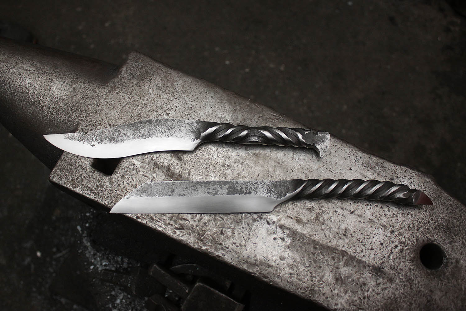 2 frangins plus costaud que des enclumes sont passés à la forge pour réaliser ces 2 magnifiques couteaux forgés.