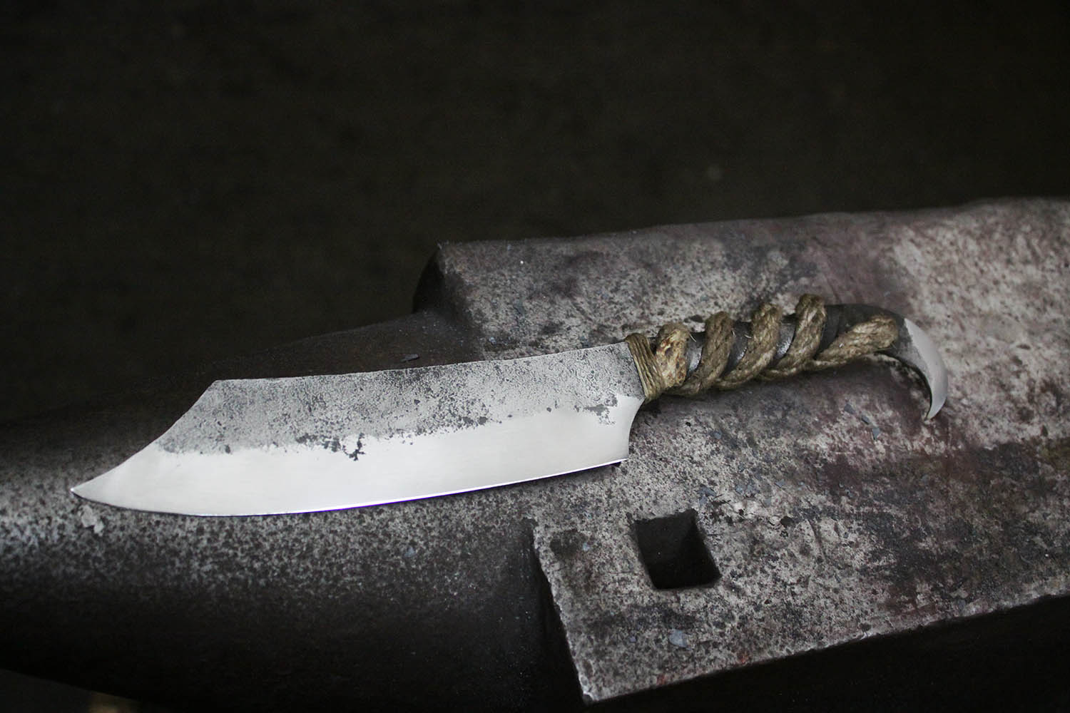 2 ans d'attente, mais un stage de forge de folie pour réaliser ce superbe couteau forgé; Il a beaucoup evoluée ntre le debut et la fin, mais c'est ca aussi la magie de la forge.