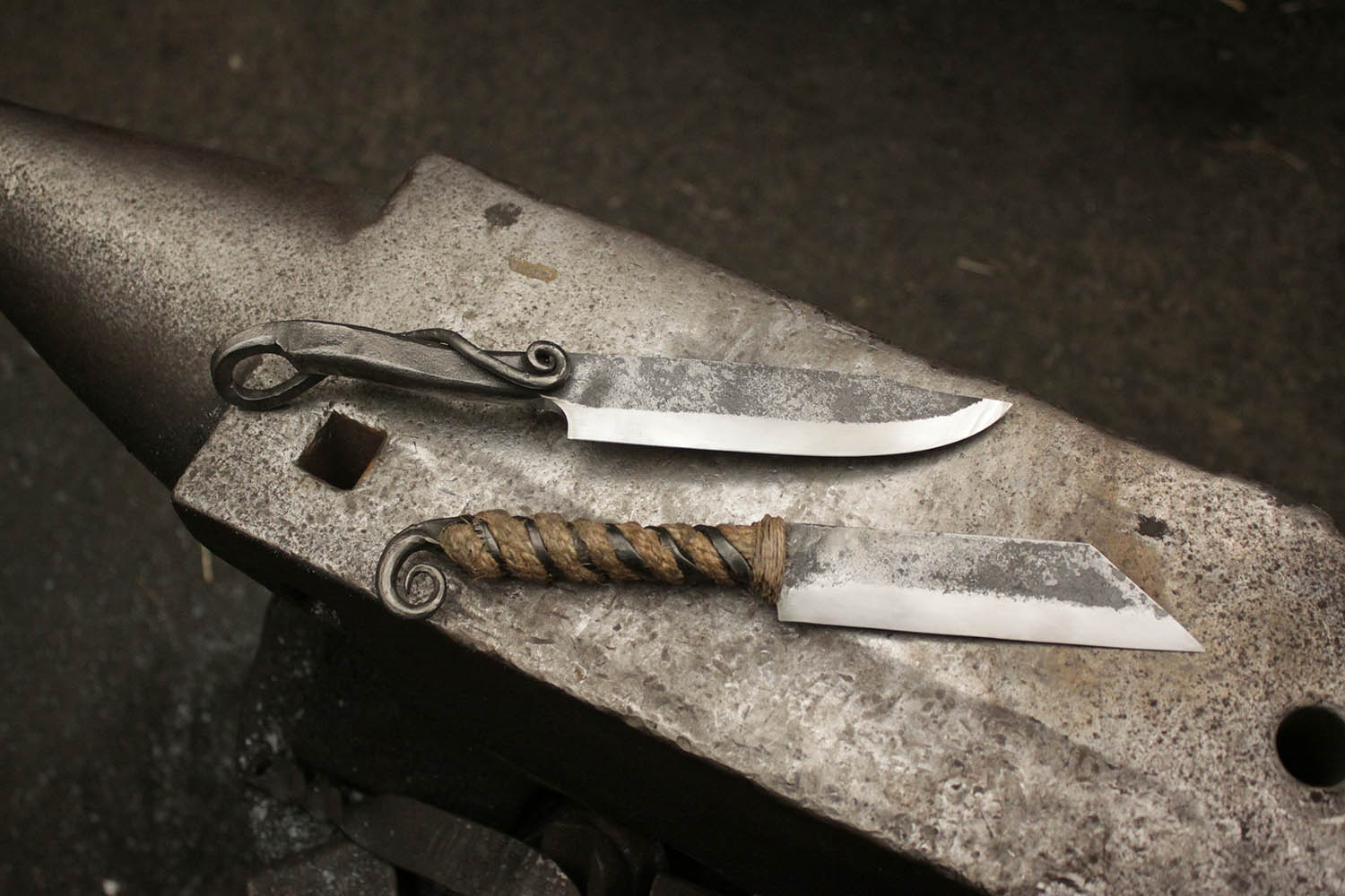 2 lames forgées pour ces 2 frangins qui se sont fait un bon délire à la forge en famille.