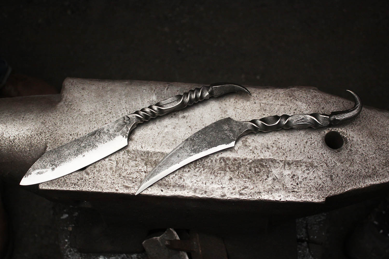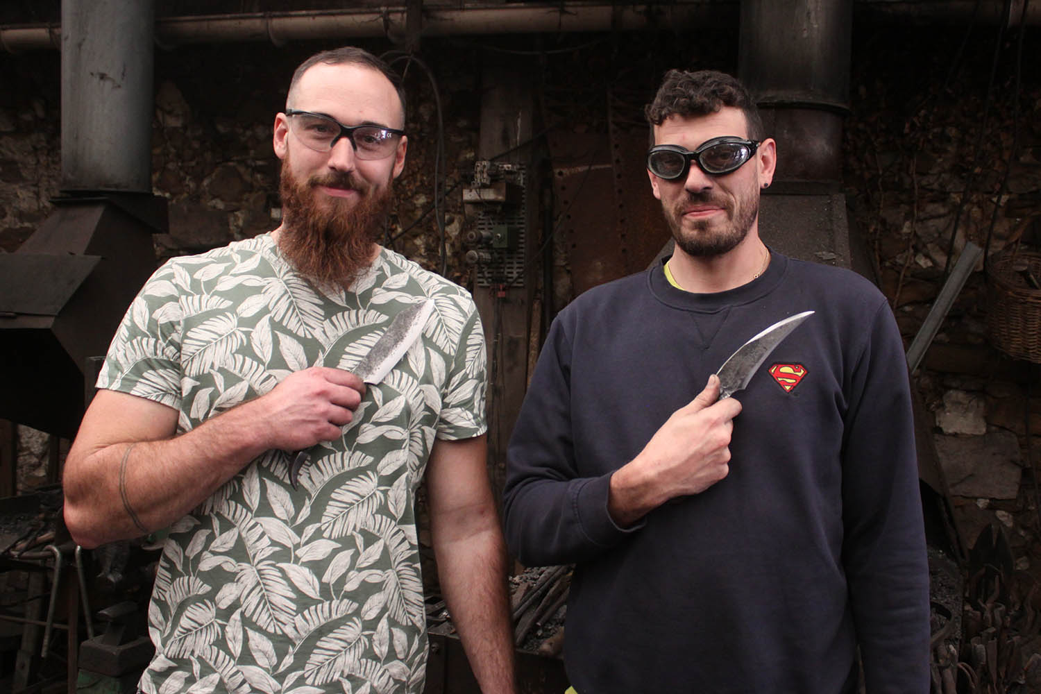 Quand 2 potes decident de venir user mes enclumes, ca donne un sacré moment. 2 couteaux forgés vraiment magnifiques. Inspiration alien et brut de forge au rdv.