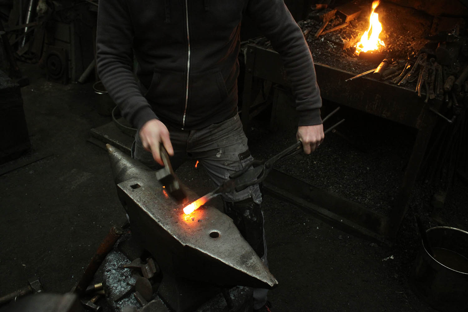 Artisan chevroné, Romain est passé par le feu et la famme pour réaliser ce magnifique brut de forge en stage. Et merci pour la porte l'ami :)