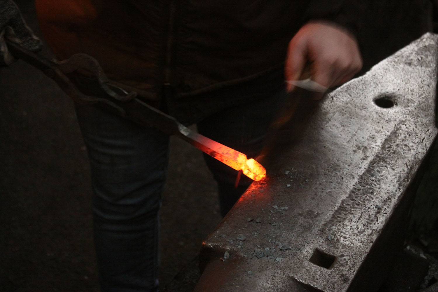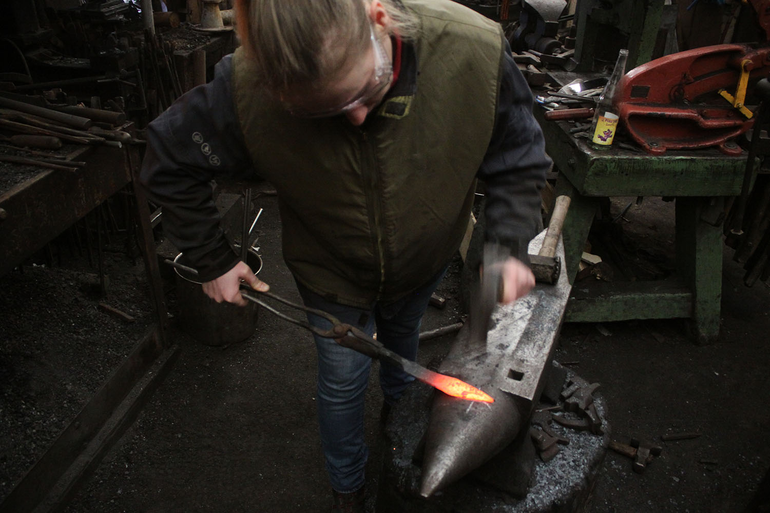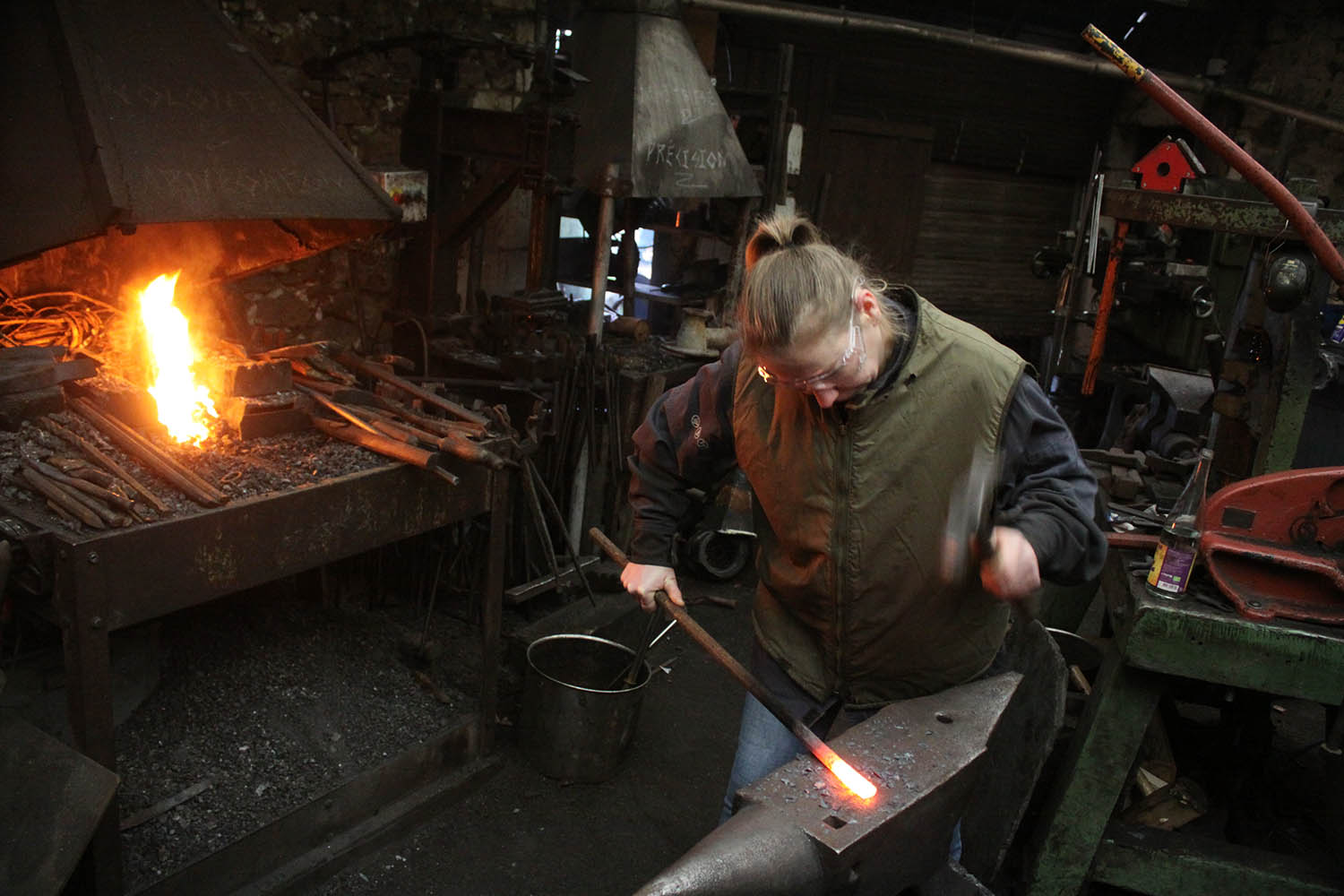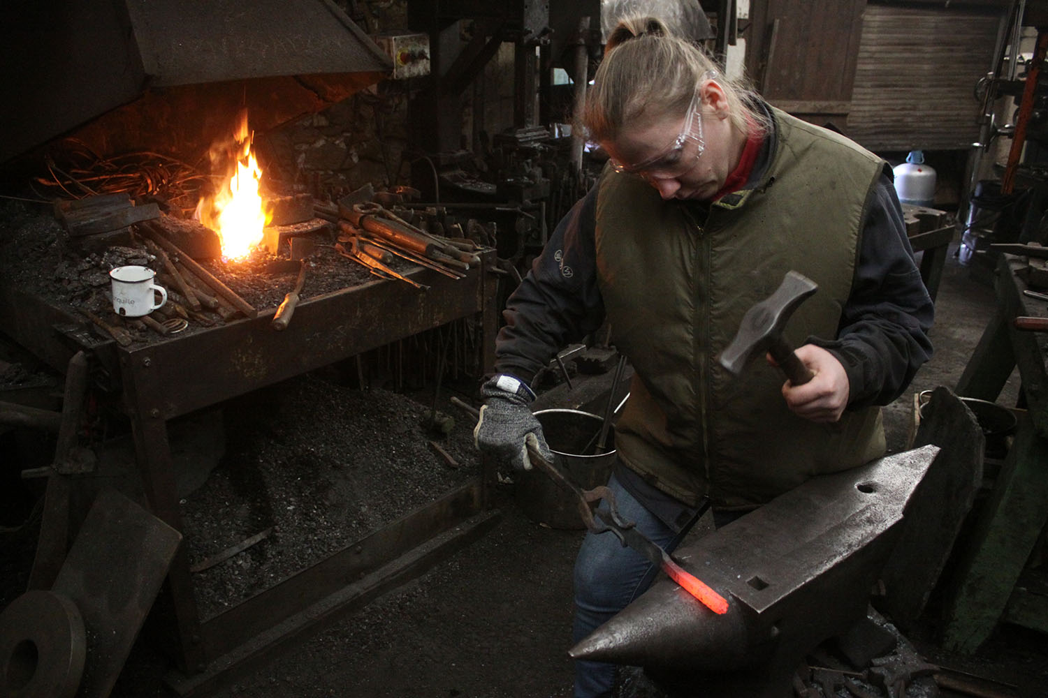 Premiers pas à la forge pour cette courageuse forgeronne.