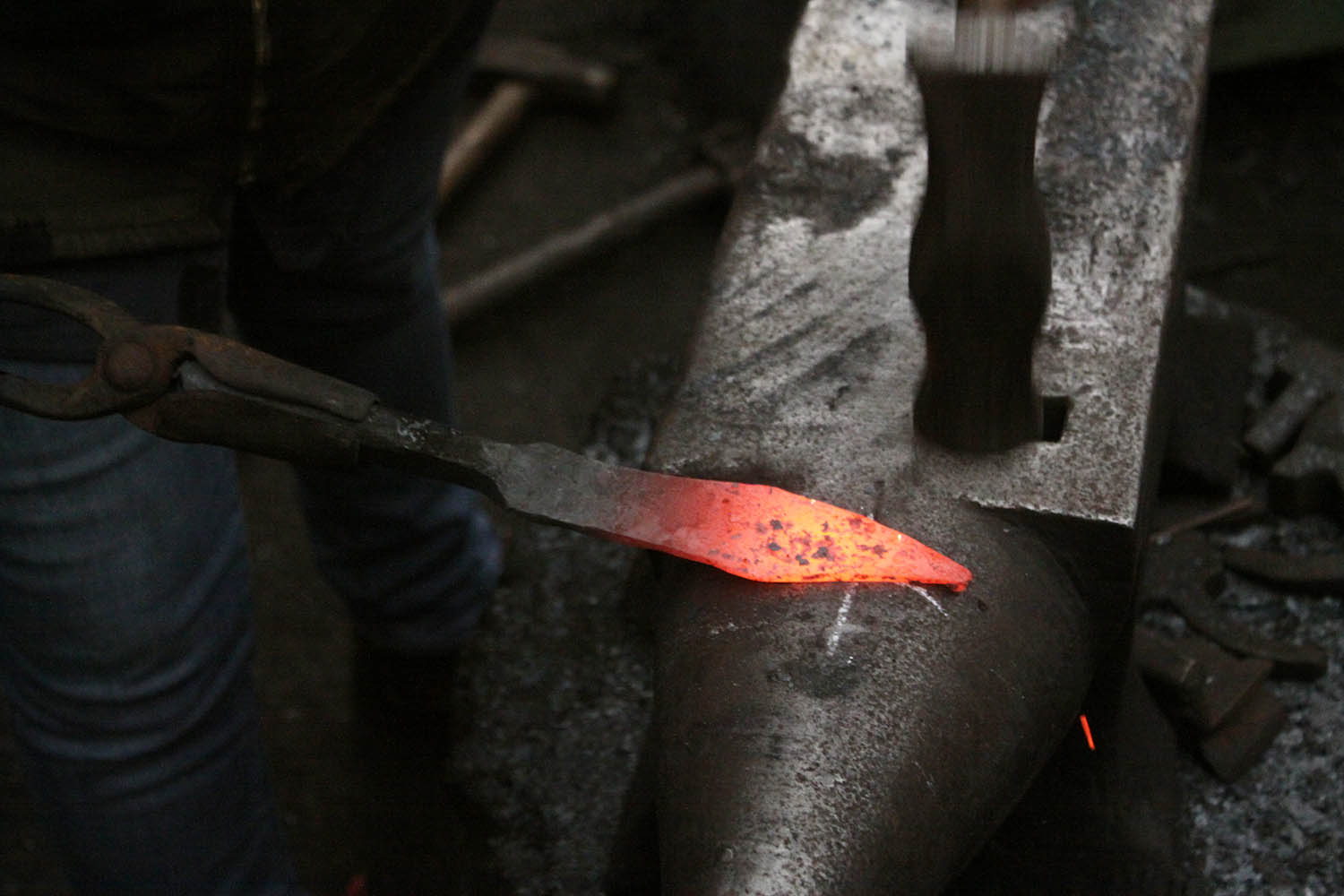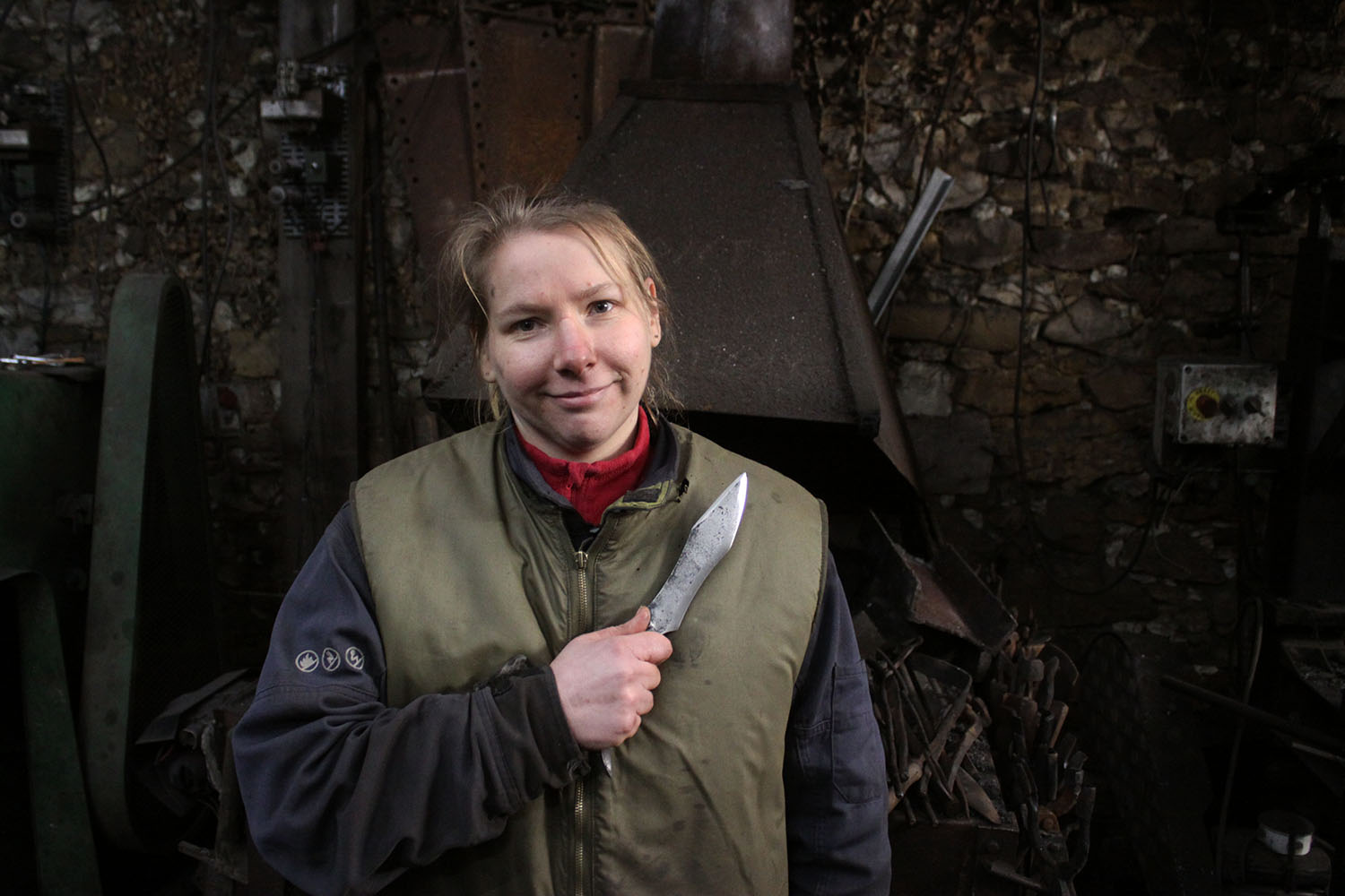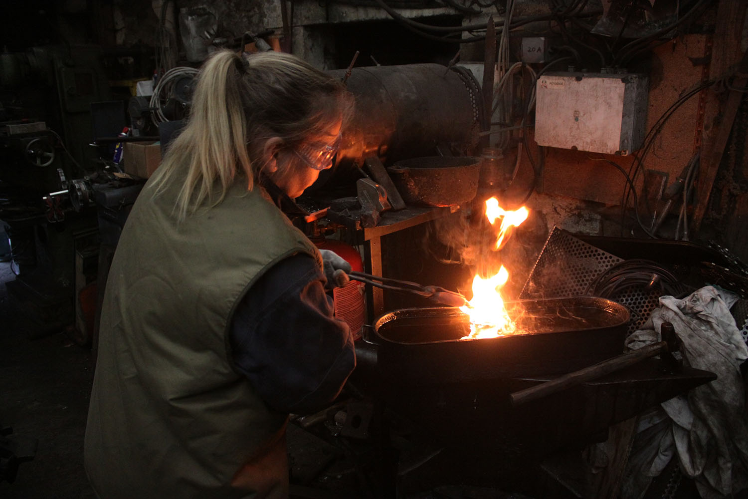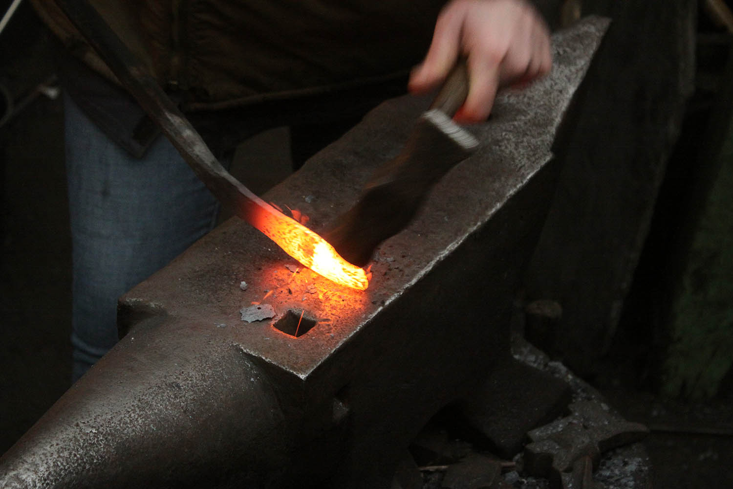 Premiers pas à la forge pour cette courageuse forgeronne.