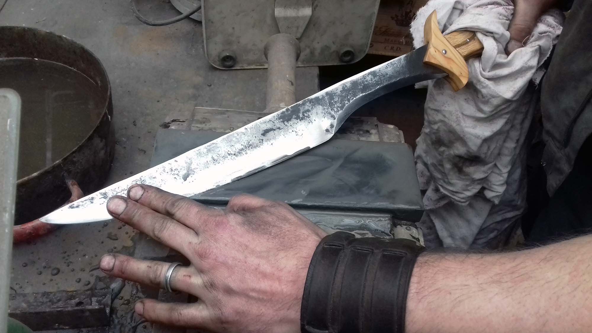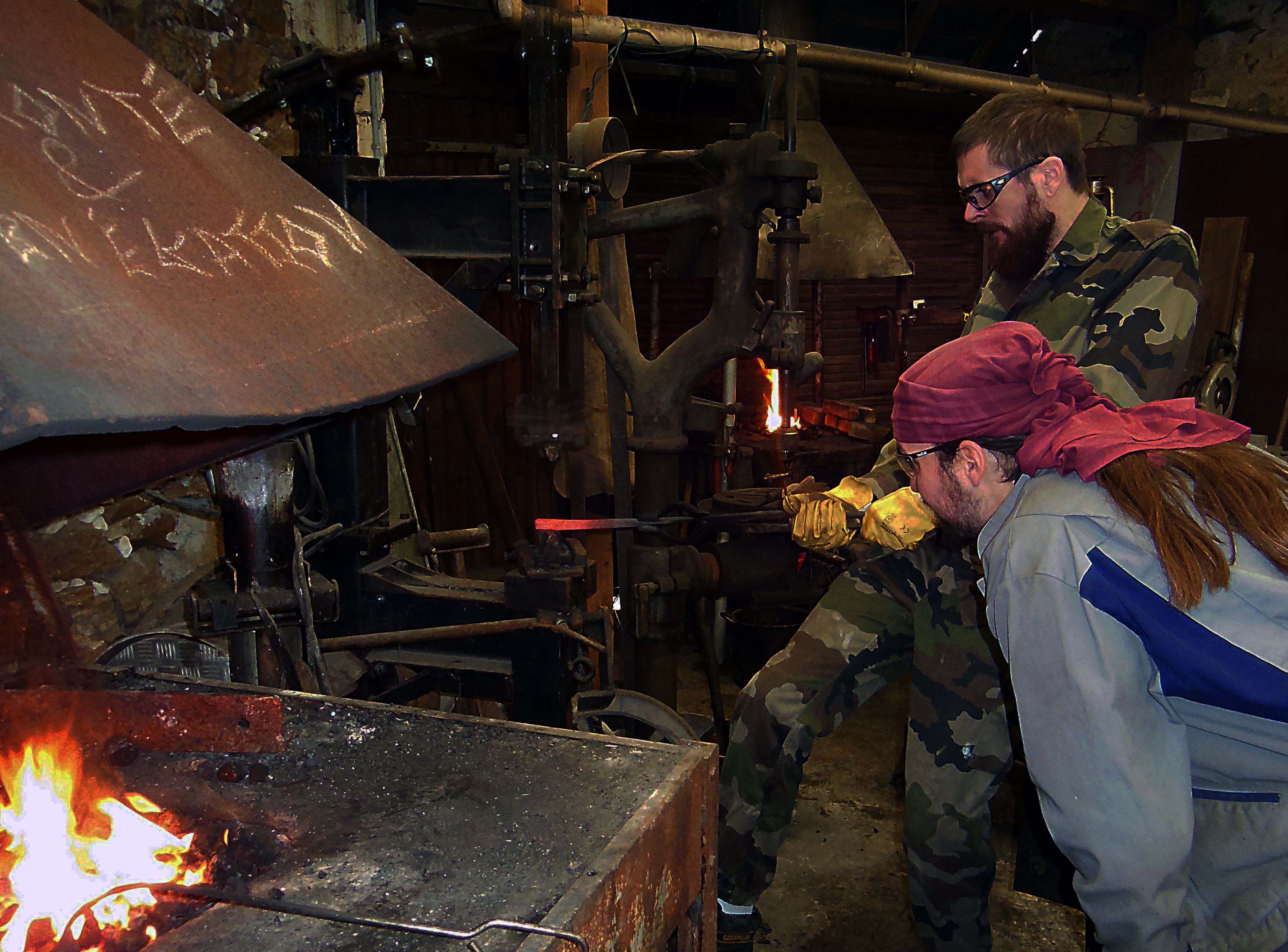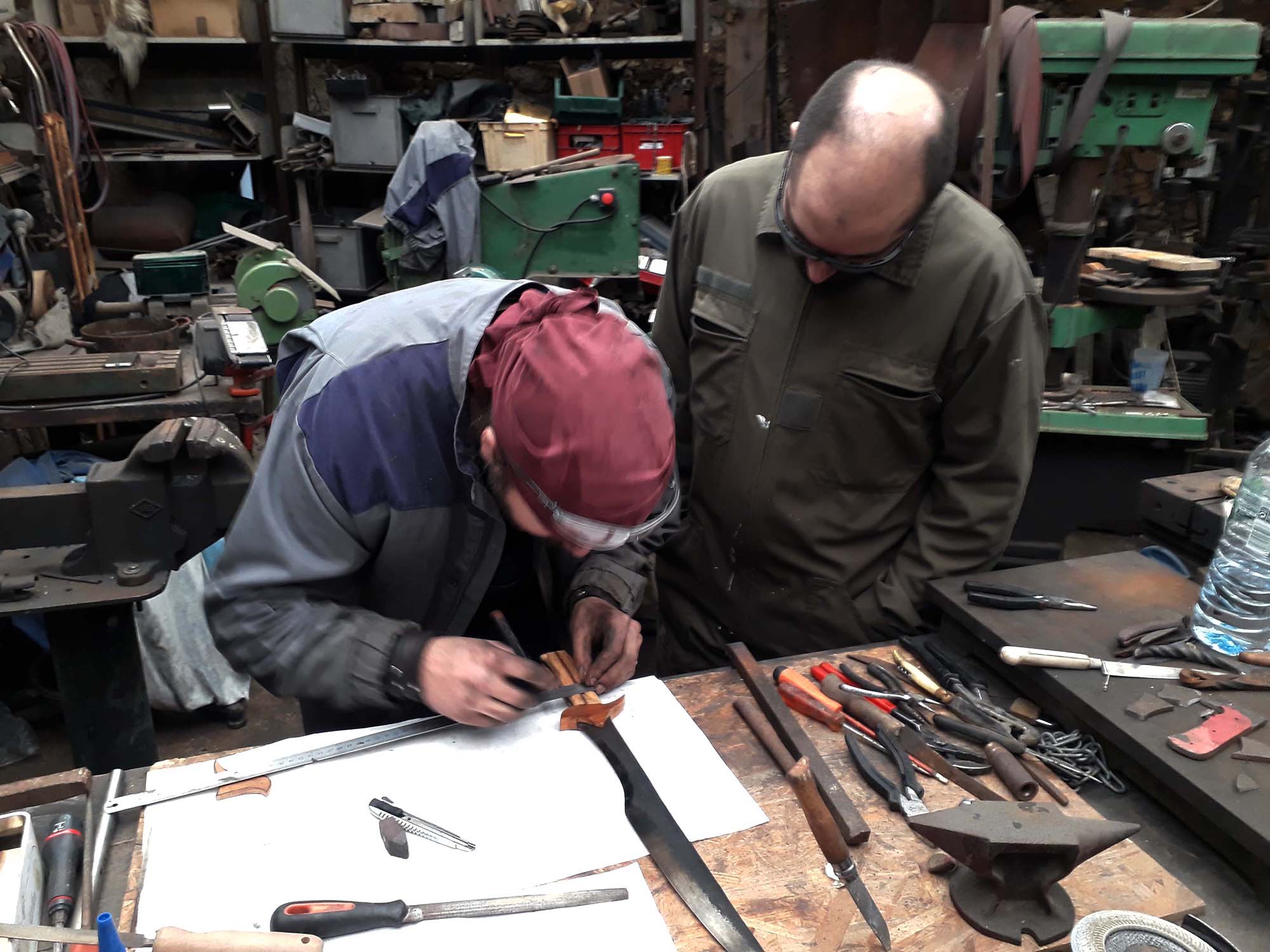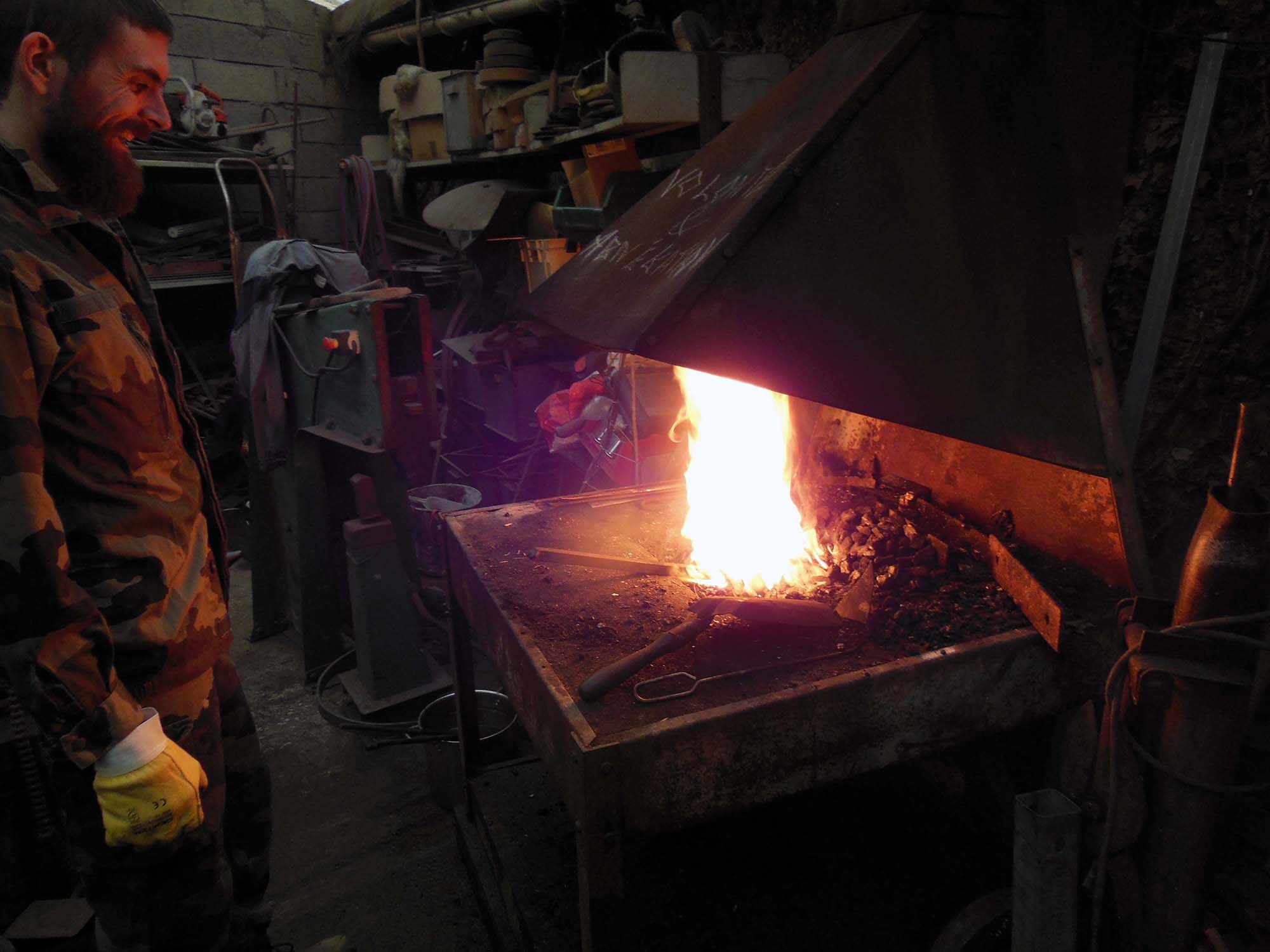 2 amis de longue date, une paire de treillis et de rangers pour 2 lames sur mesure. Matthieu s'est fait un énorme couteau brute de forge et Sebastien lui une très longue lame avec garde sculptée sur un design général basé sur Orcrist, "le fendoir à Goblin" de Bilbo le Hobbit ! Super cool de travailler sur des dessins précis !