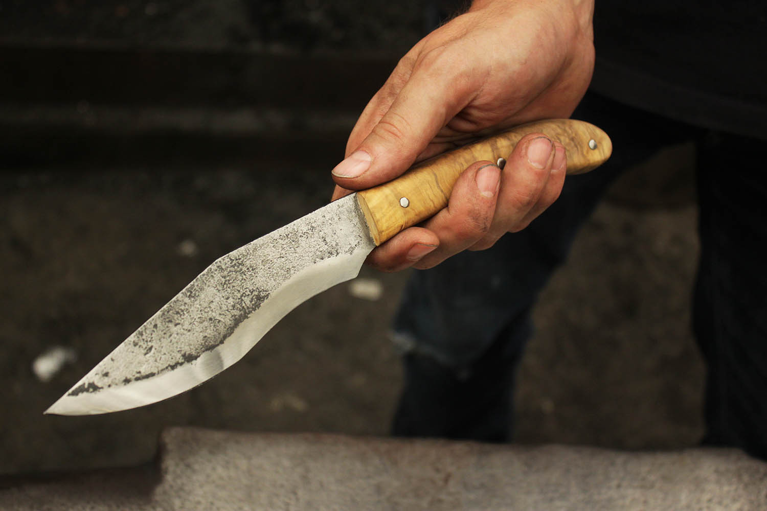 Désireux d'explorer le monde de la forge, Richard est passé à l'atelier pour réaliser ce couteau forgé avec un manche en buis. Bois qui pour lui est porteur de souvenir. Très beau travail.