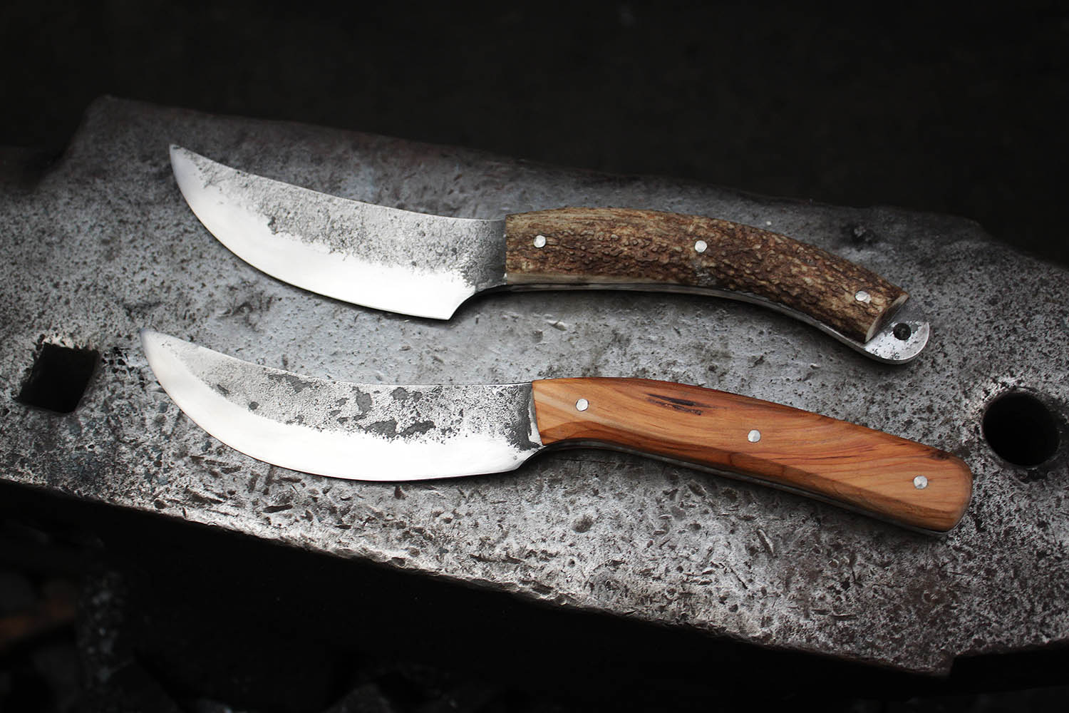 Quand la femme envoi son mari et son père en stage, ca donne un superbe stage de forge tout en maitrise, en passion et en travail. Au programme, 2 couteaux forgés uniques pour Xavier Philippe. 1 avec manche en bois de cerf et l'autre en If. Un travail acharné mais qui en valait la peine. bien joué les copains, vous avez géré.