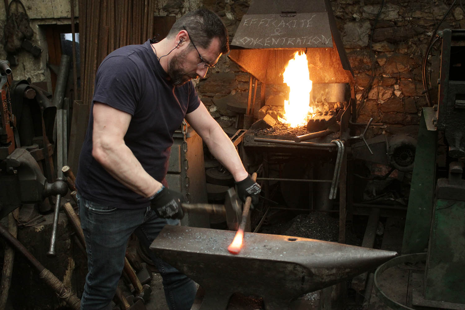 Apres etre passé avec son fils, Serge est revenu à la forge avec son pote Sebastien our réaliser ses 2 couteaux forgés. Un sacré stage de forge pour ces 2 compères