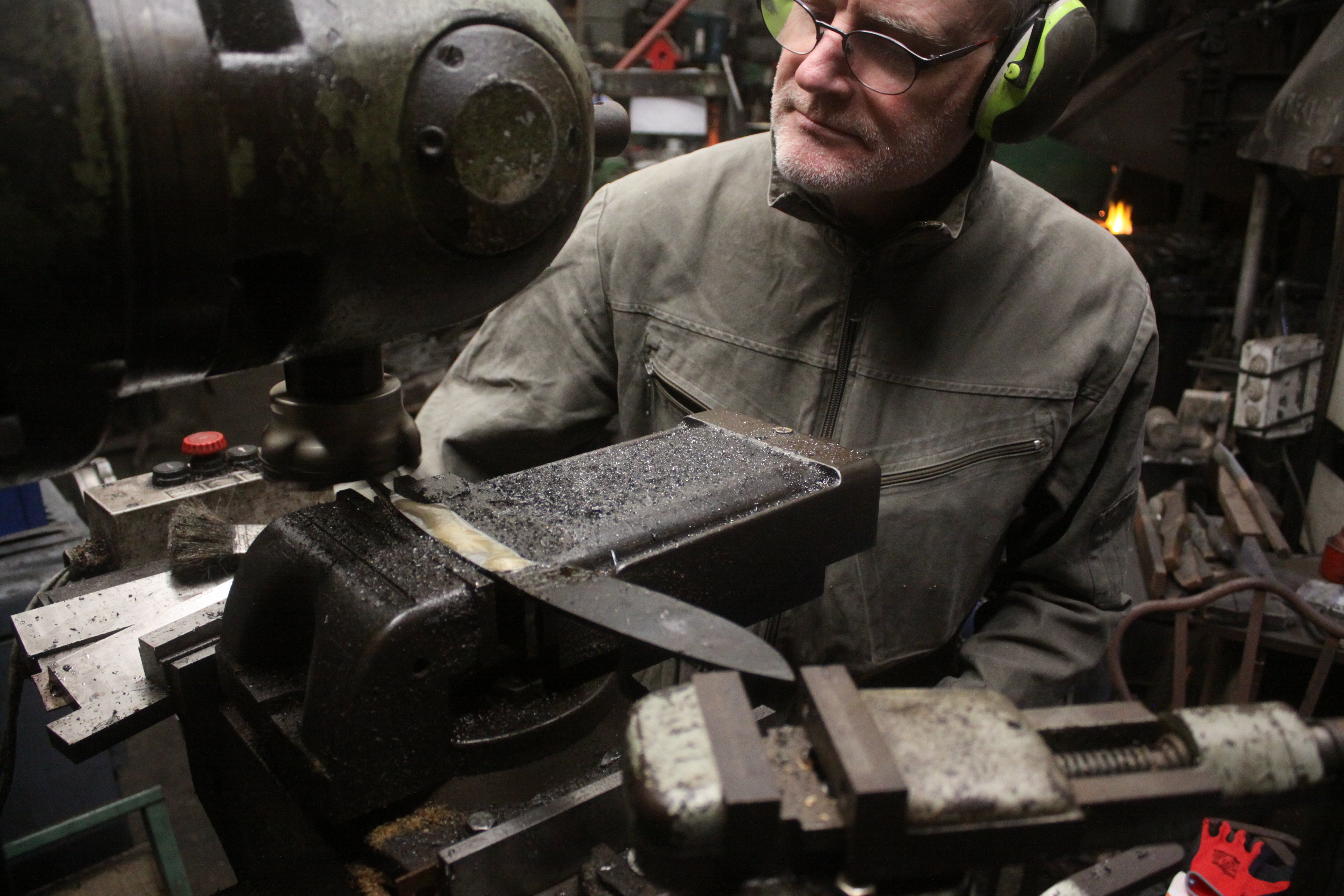 Beau couteau brut de forge avec manche en acacia pour ce spécialiste de la soudure !