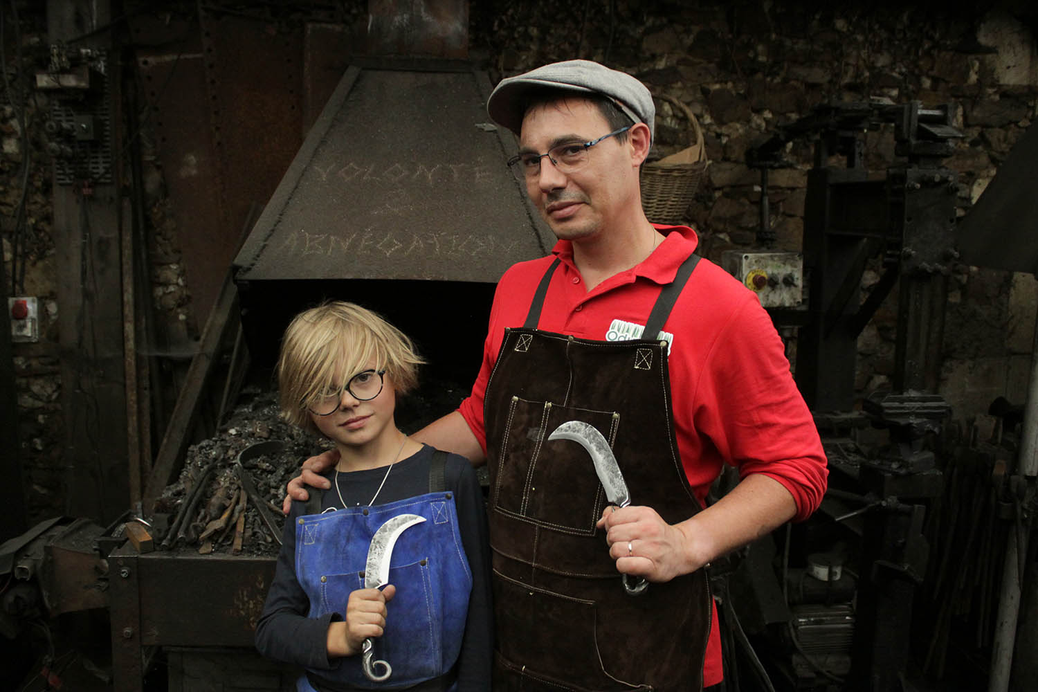 Stage en famille, grand père et petit fils pour une lame, et le papa pour l'autre. Génial.